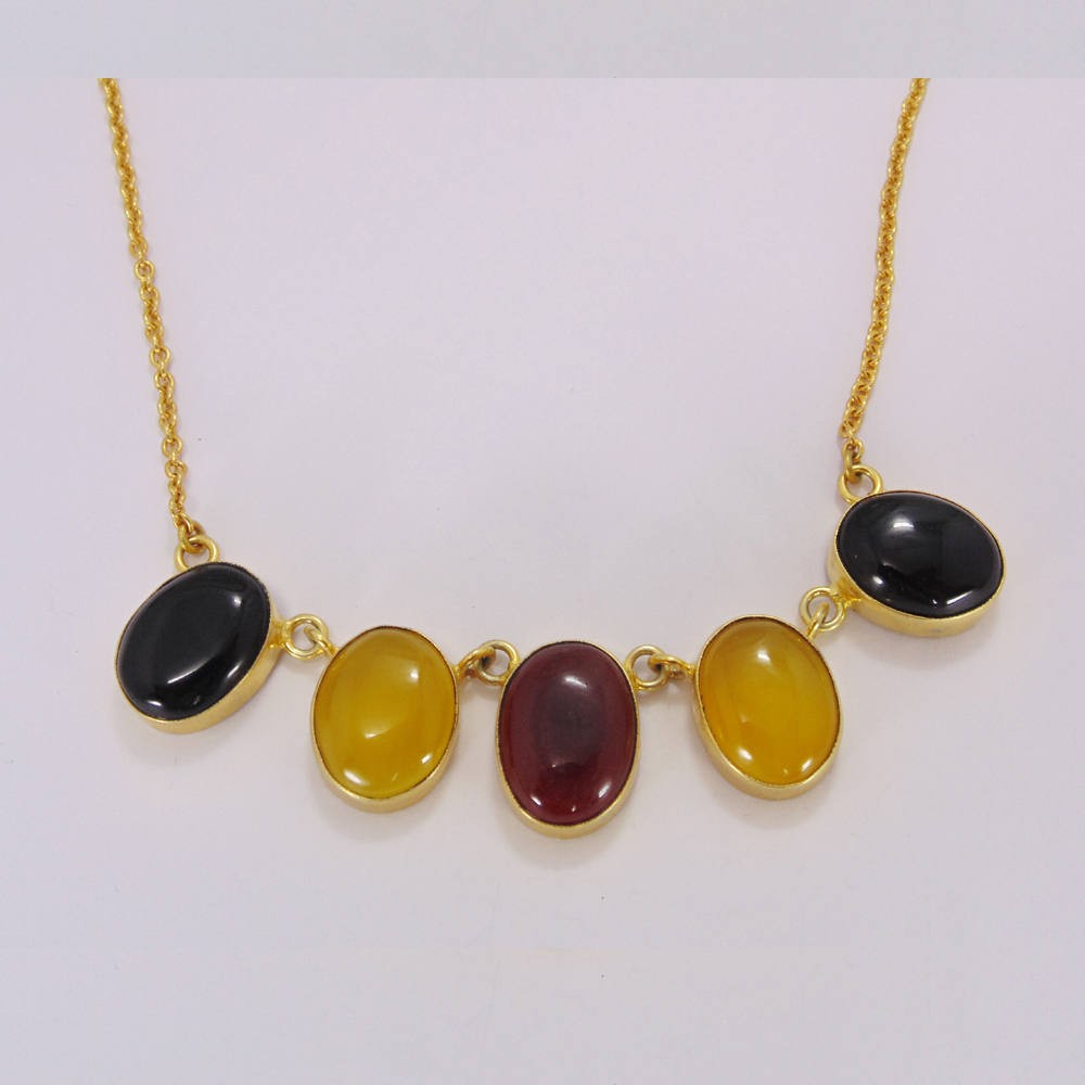 Natural Black Onyx Gemstone Gold Vermeil Statement Designer Necklace For Women