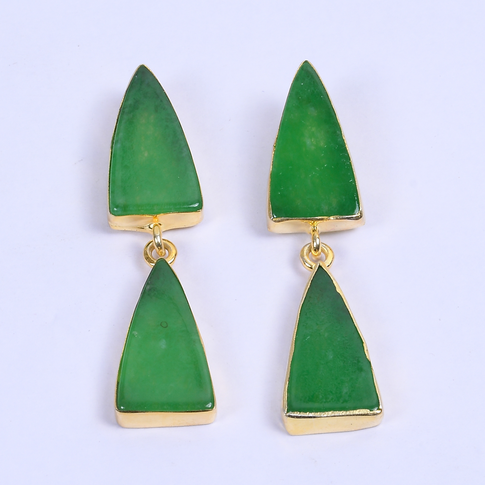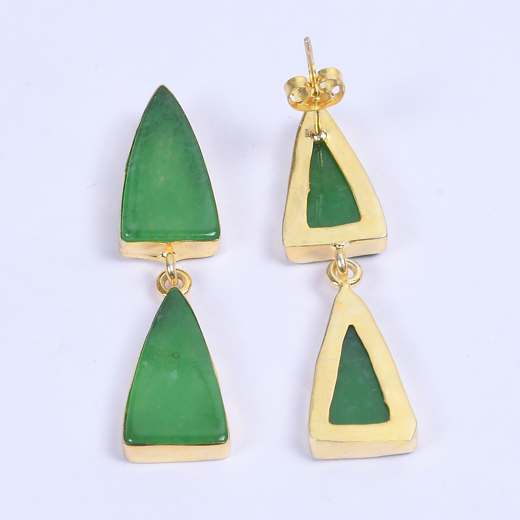 Triangle Shape Green Aventurine Gemstone Post Dangle Earrings For Valentines Gift