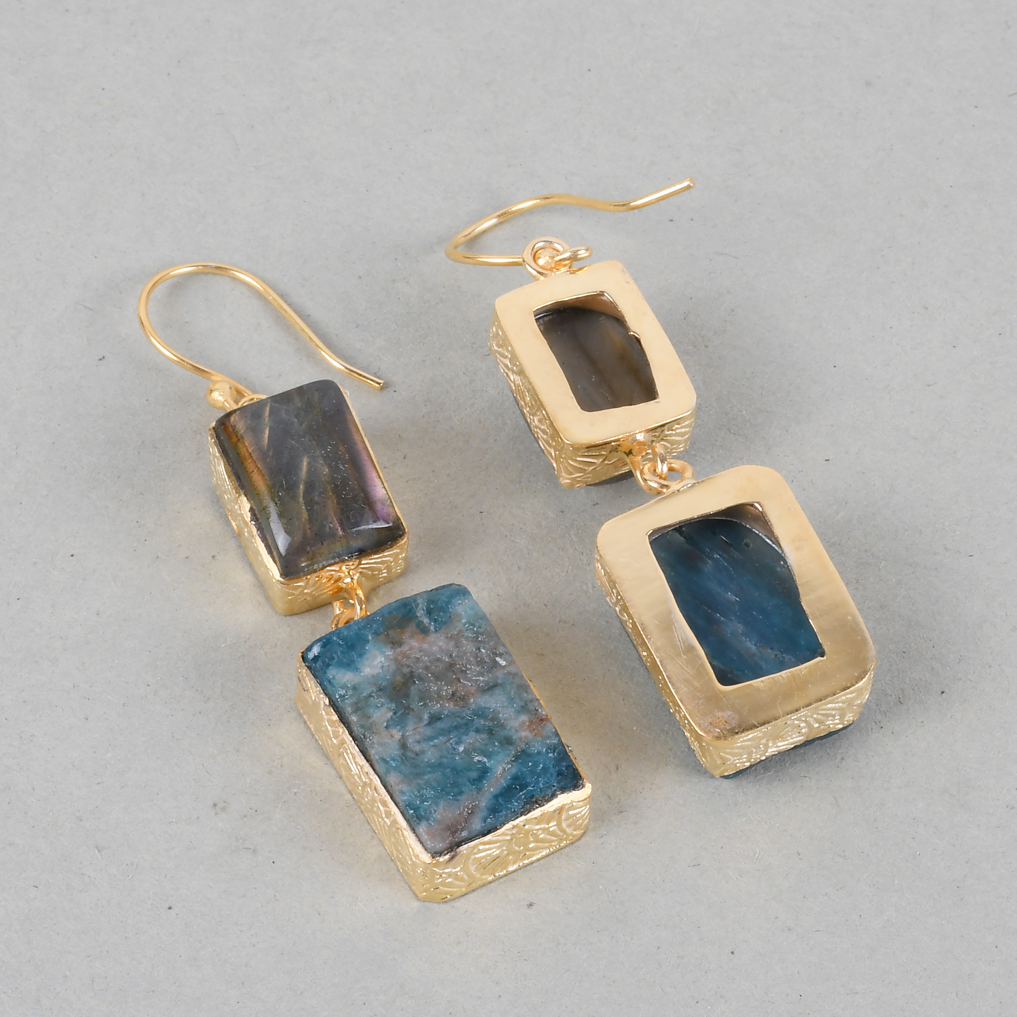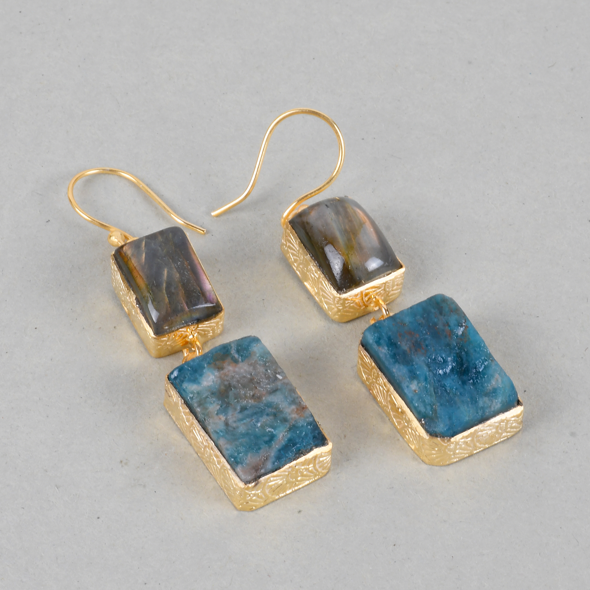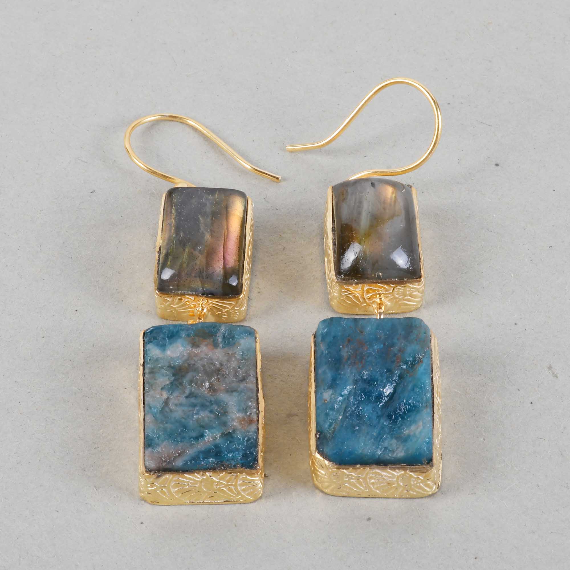 Natural Apatite And Labradorite Gemstone Designer Earrings