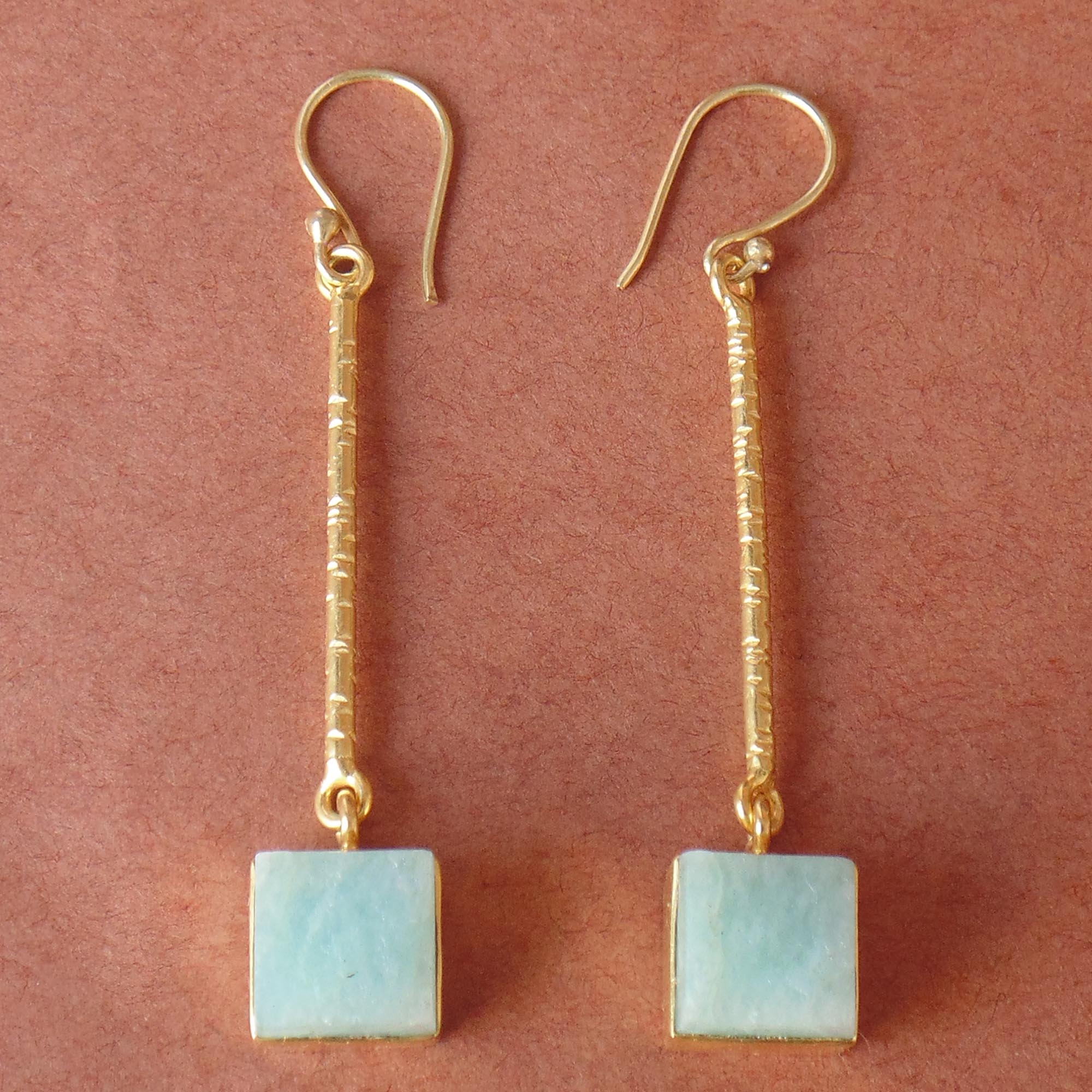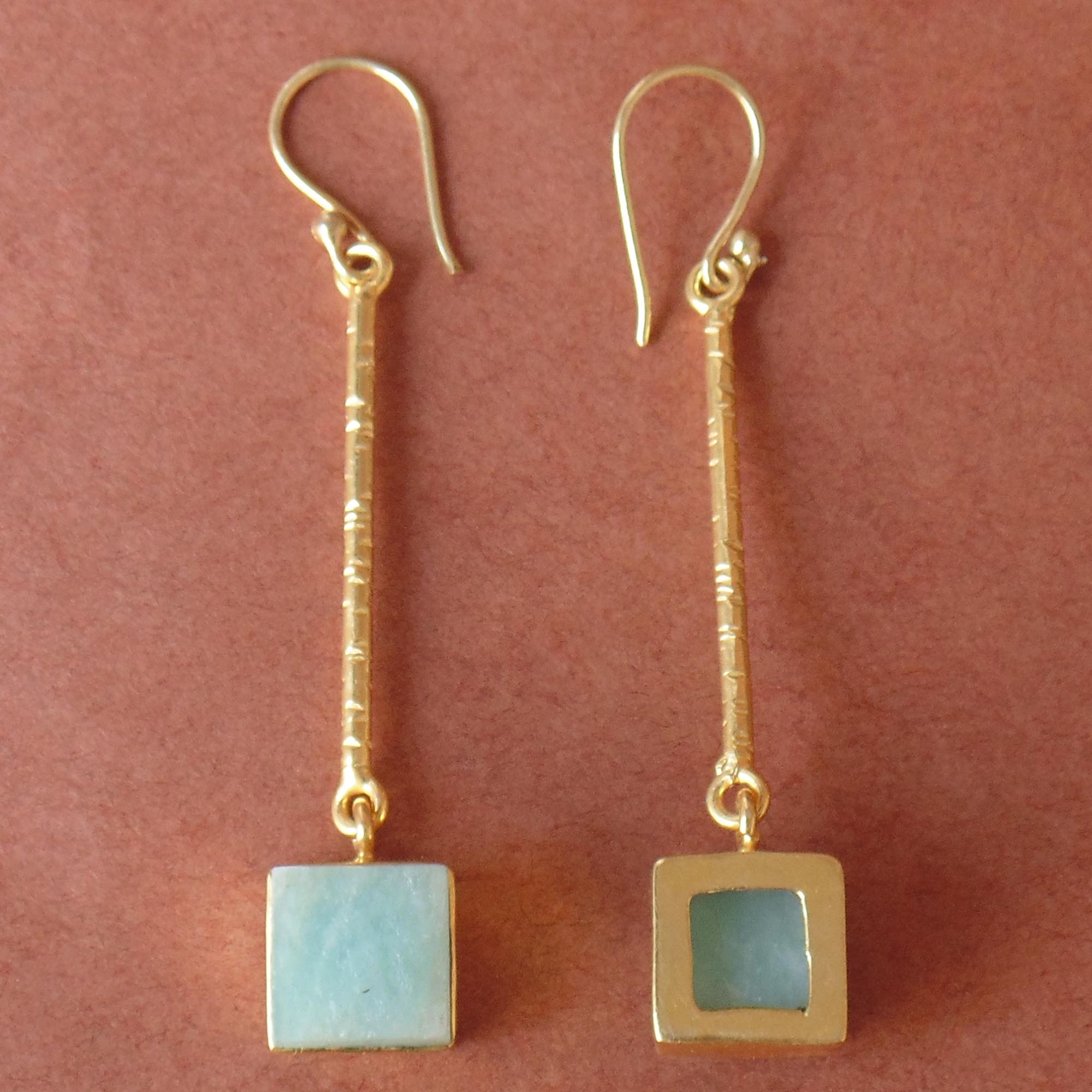 Handmade natural Amazonite Birthstone Bezel Set Long Dangle Earrings