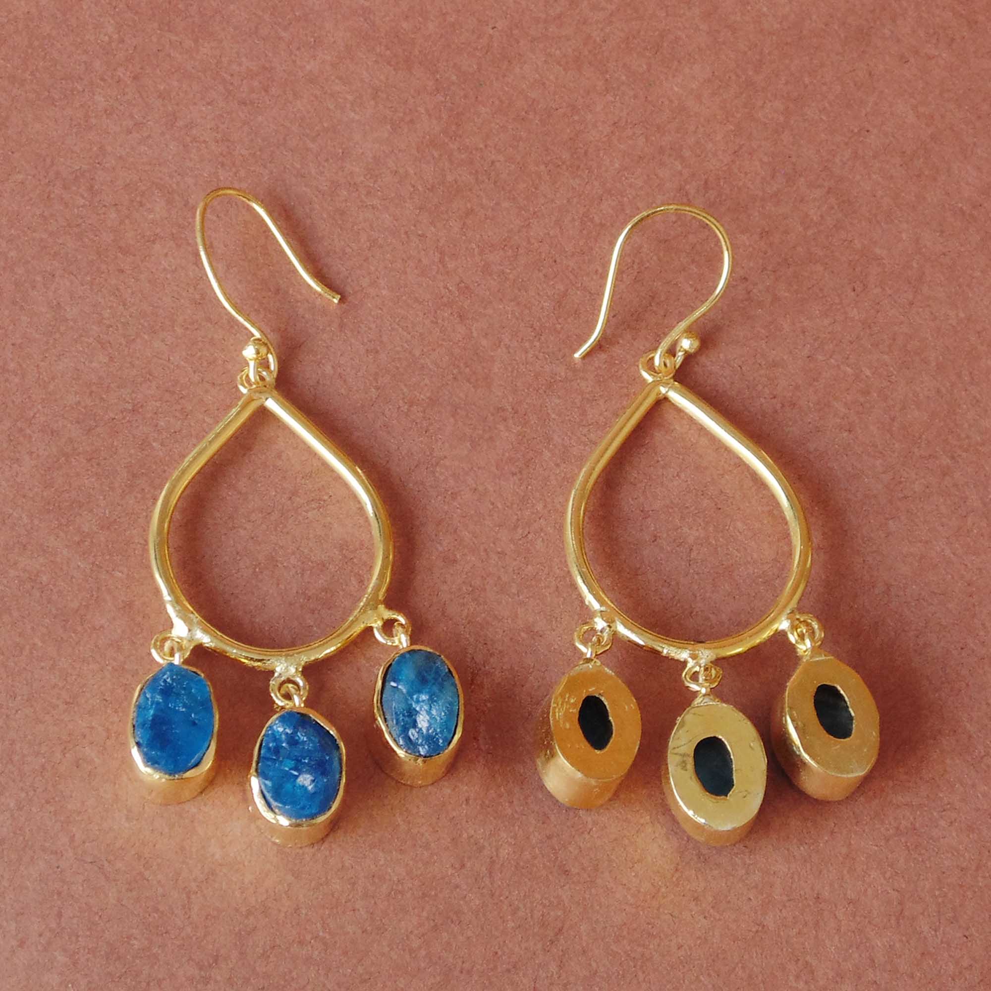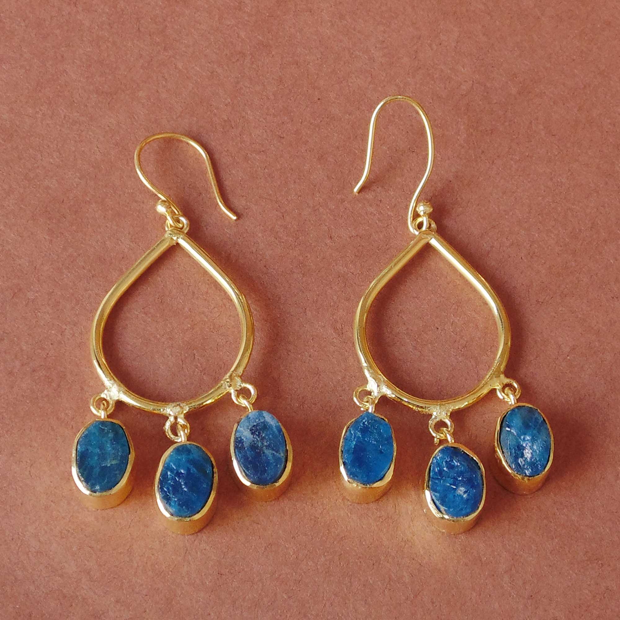 Add a touch of something blue to your wedding trousseau with this stunning blue Apatite gemstone chandelier earrings set on 18k yellow gold plated design this beauty is sure to dazzle.