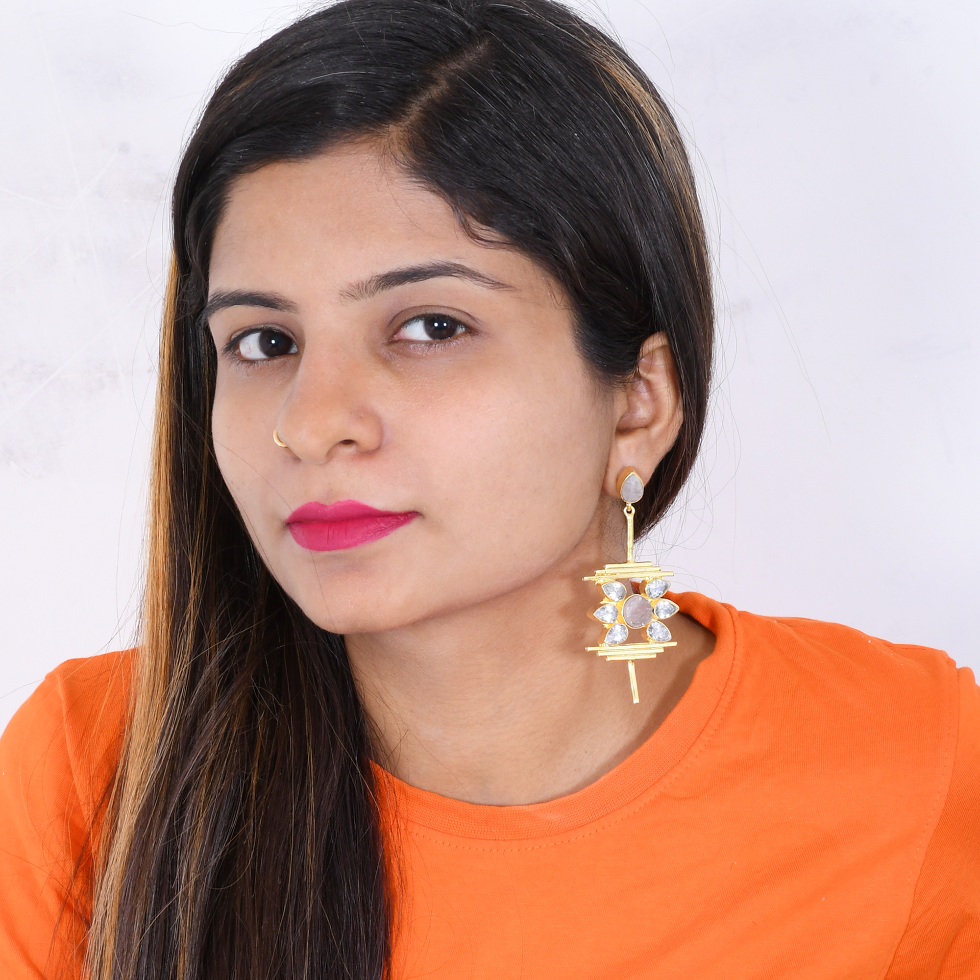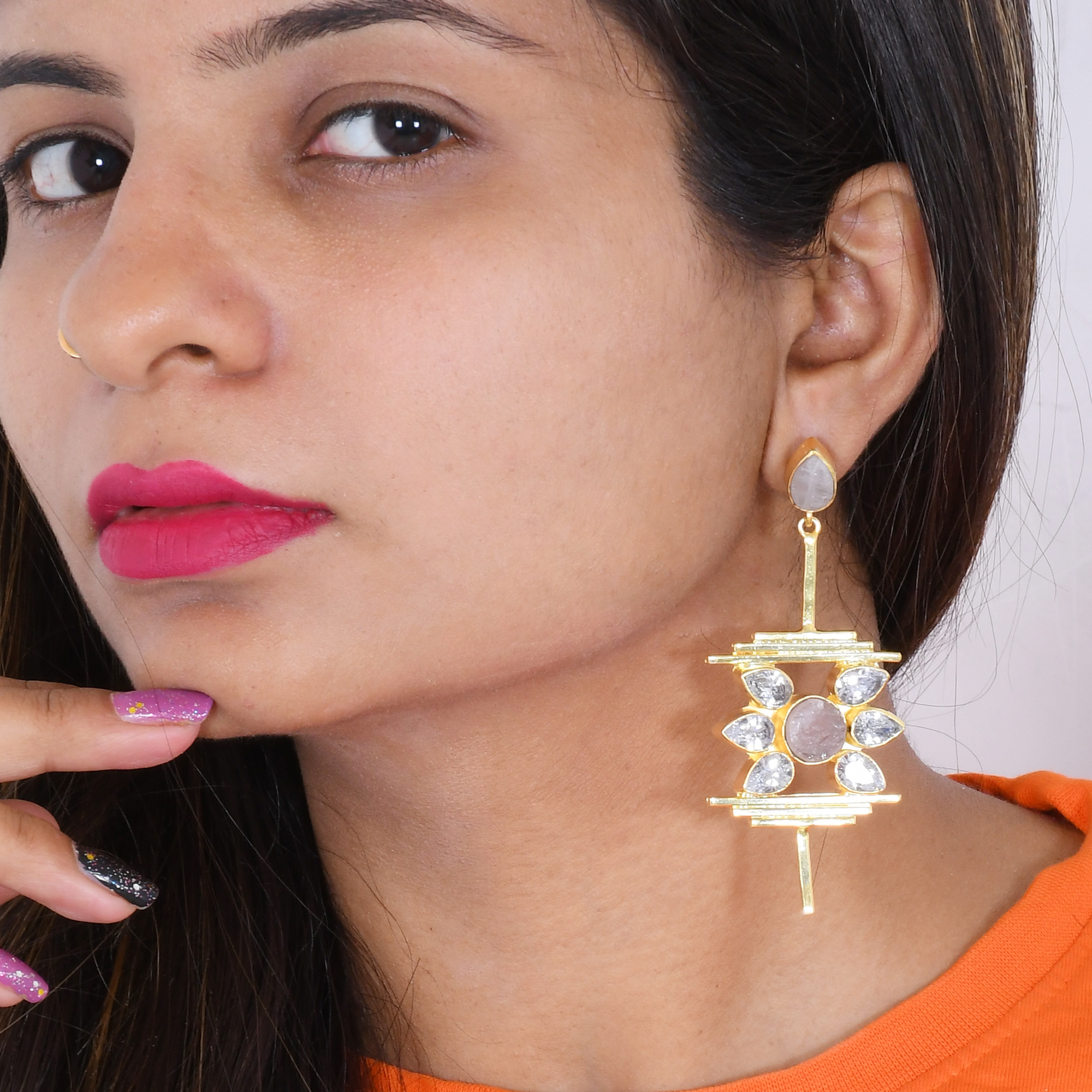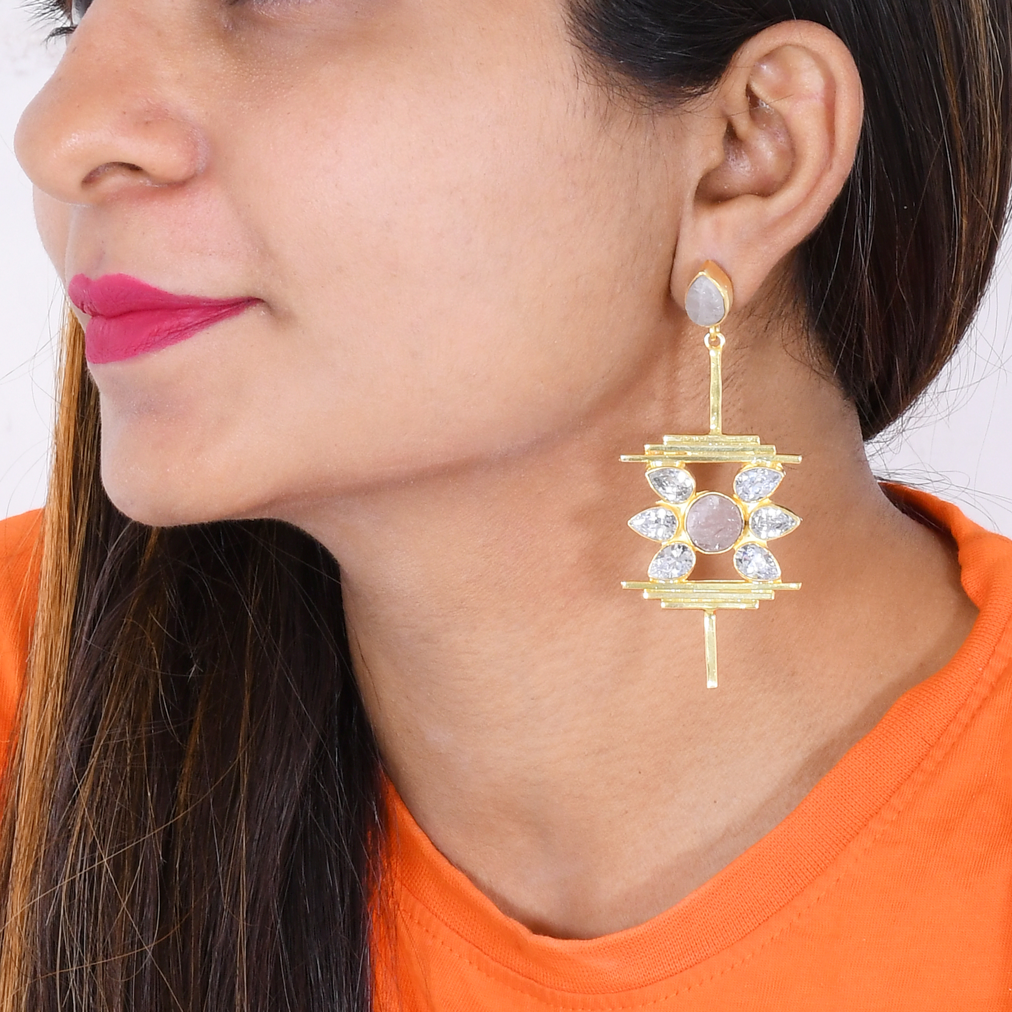 Handmade Rose Quartz And Cubic Zirconia Wedding Earrings