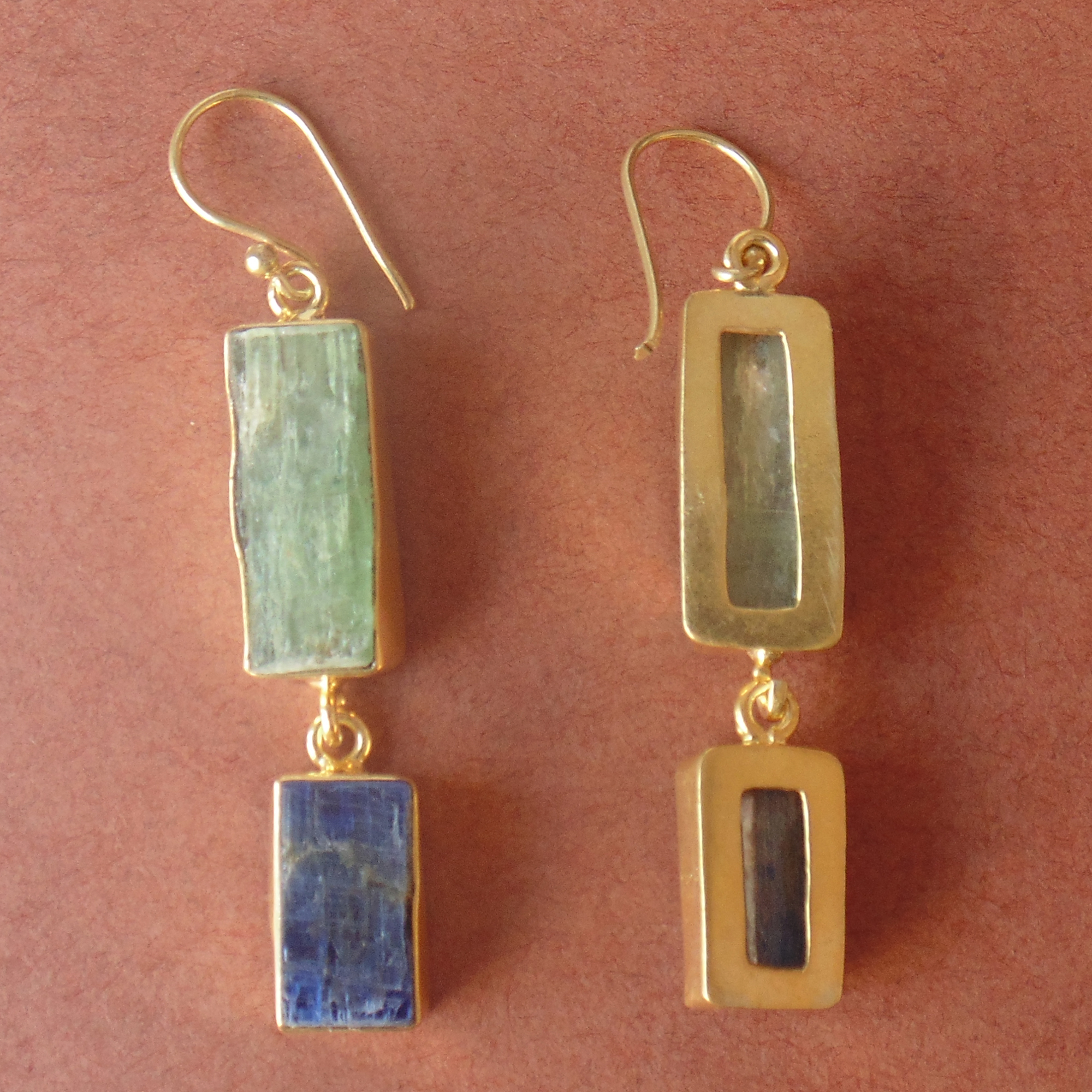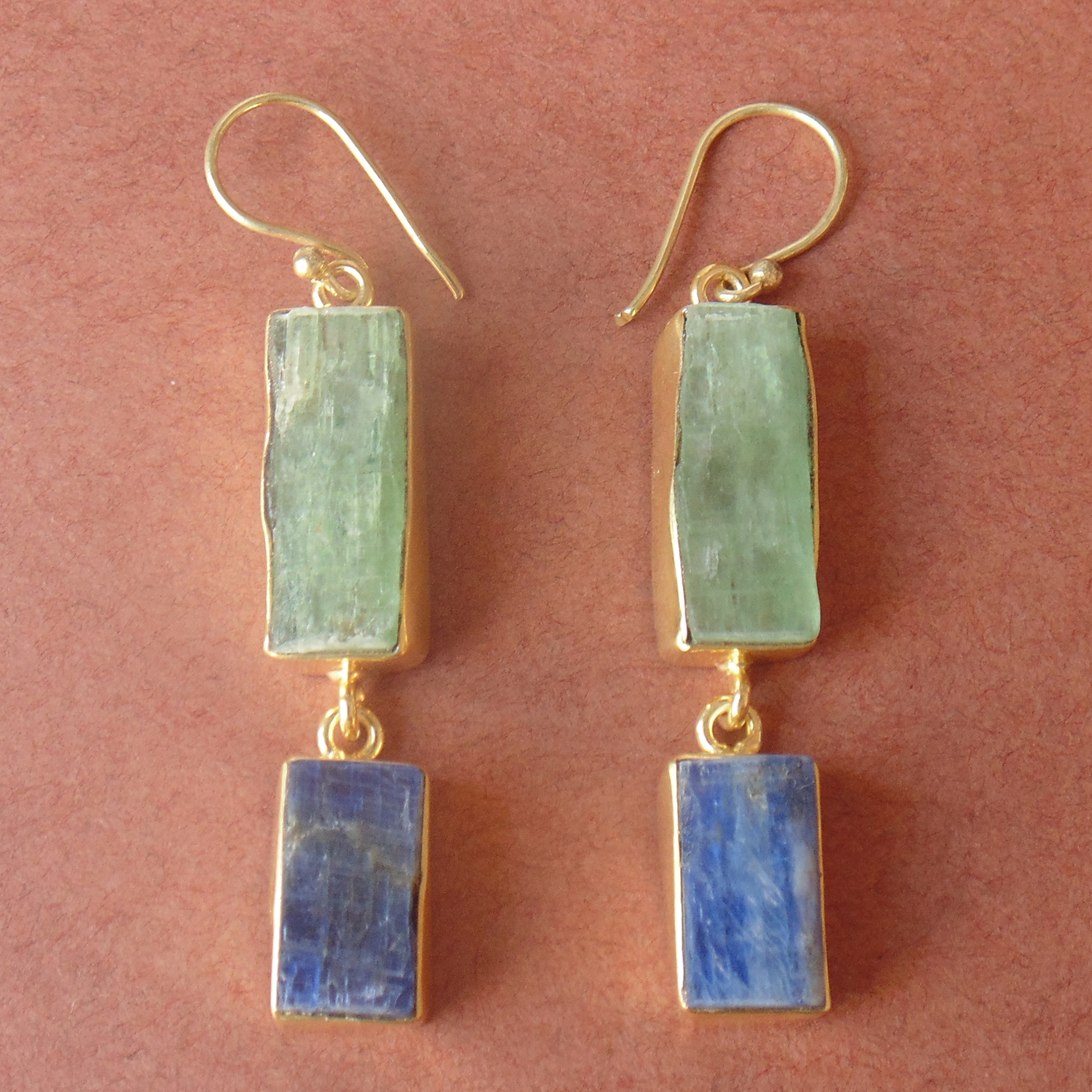 Handmade Green Kyanite And Blue Kyanite Dangle Earrings