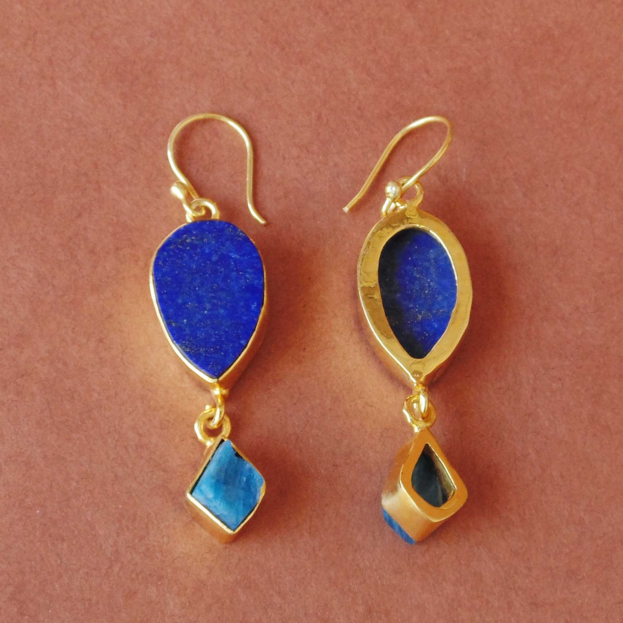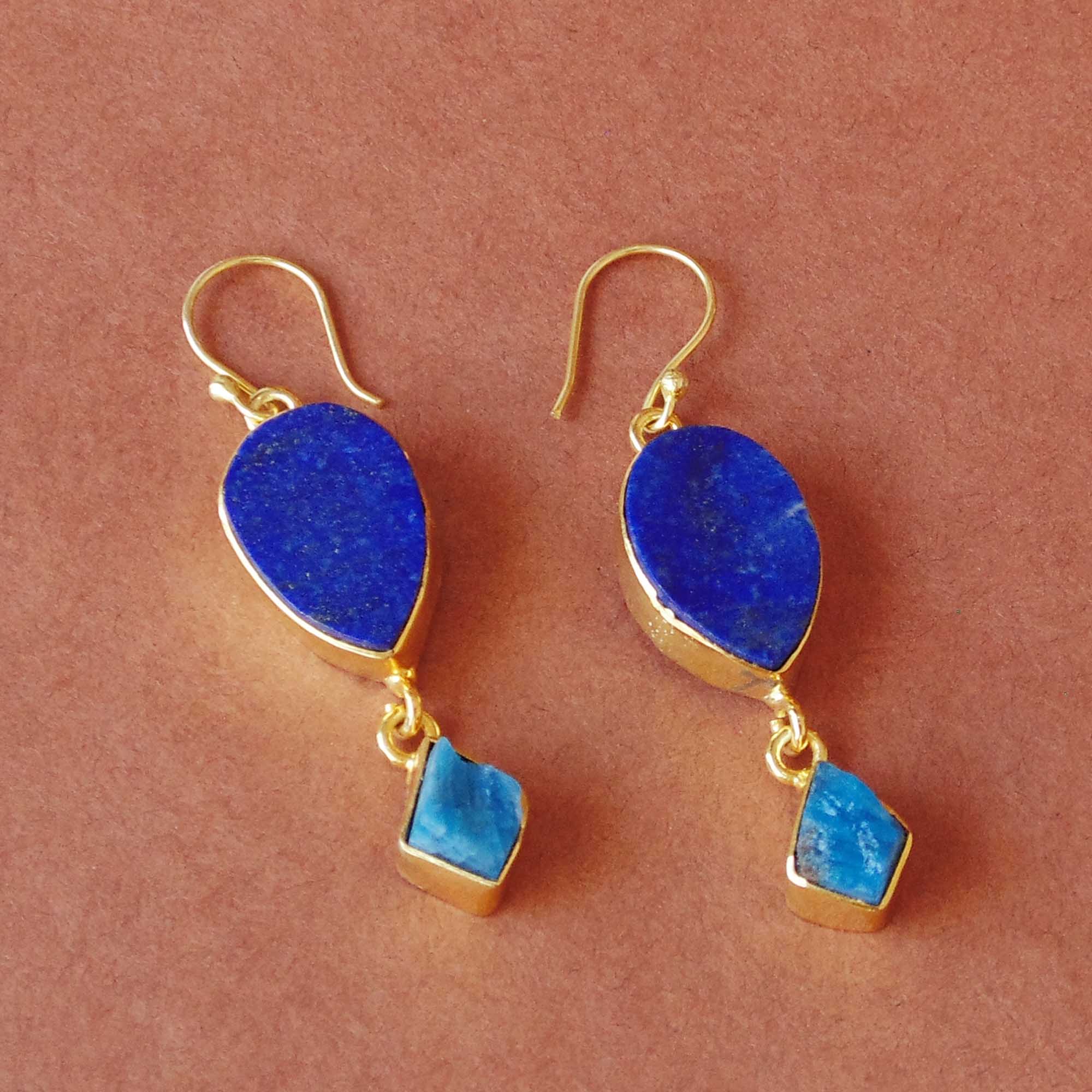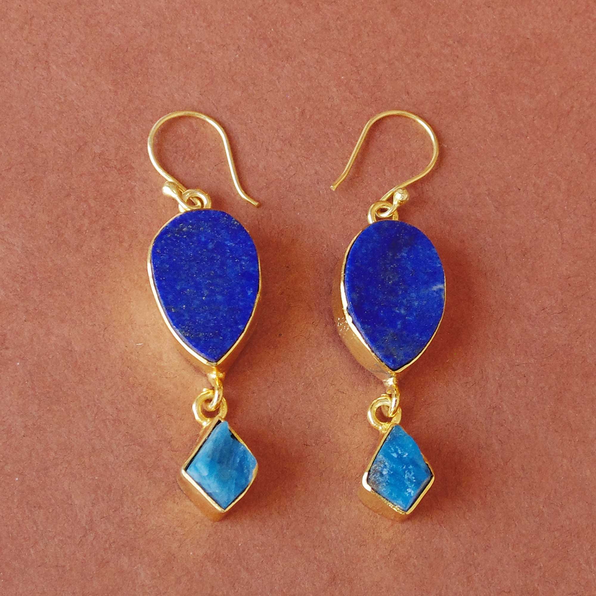 Handcrafted Blue Lapis Lazuli And Apatite Gemstone Designer Earrings