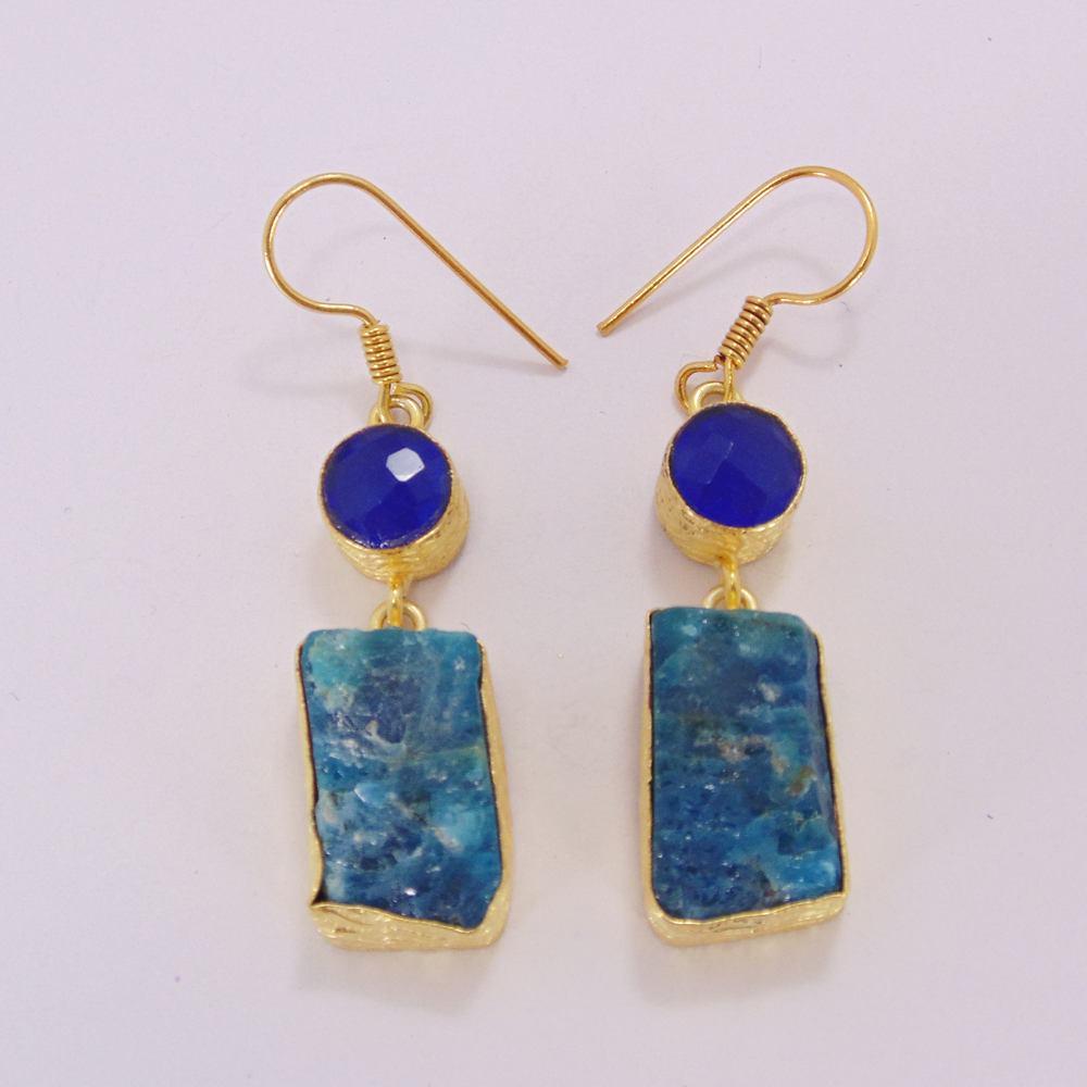 Blue Chalcedony And Raw Apatite Birthstone Dangle Earrings