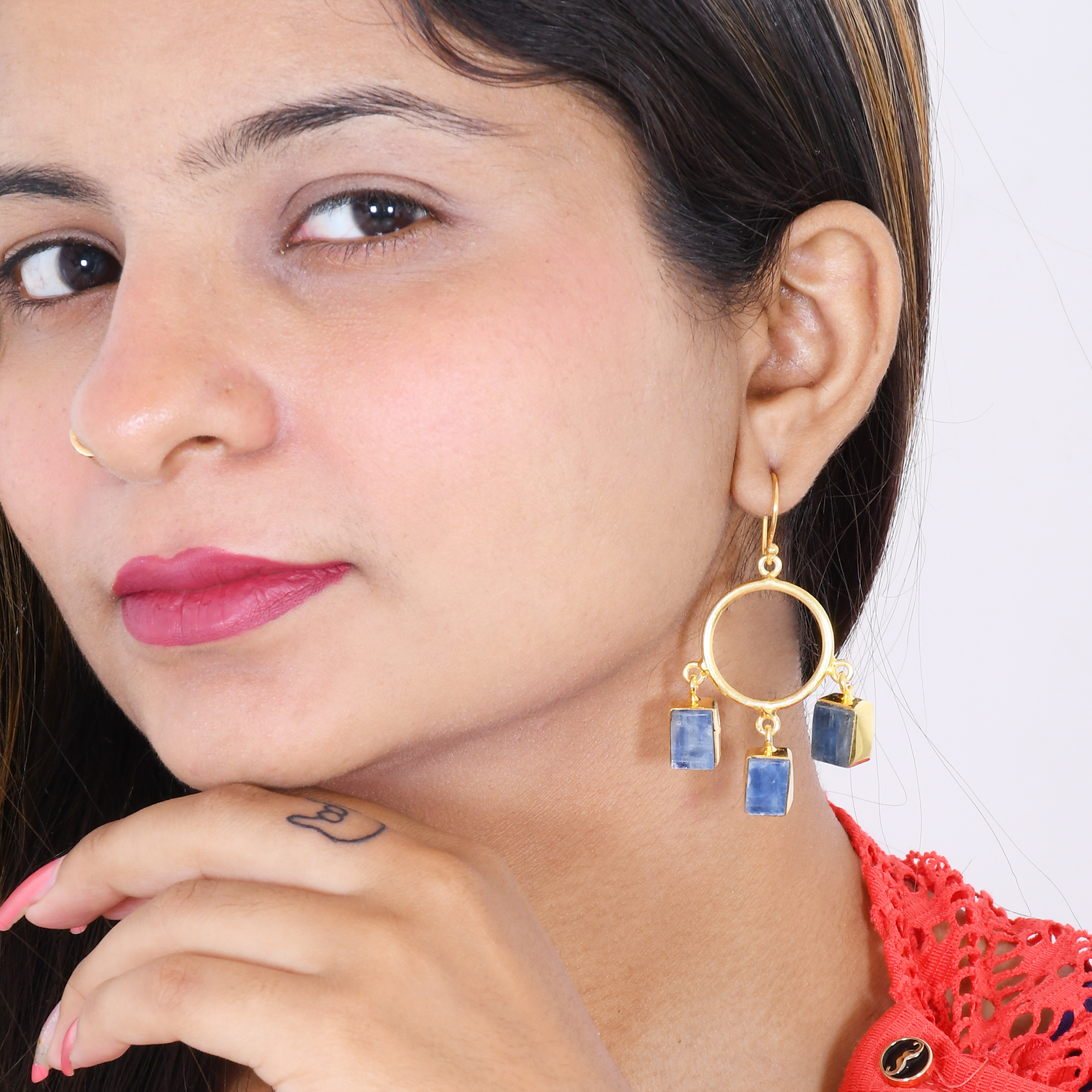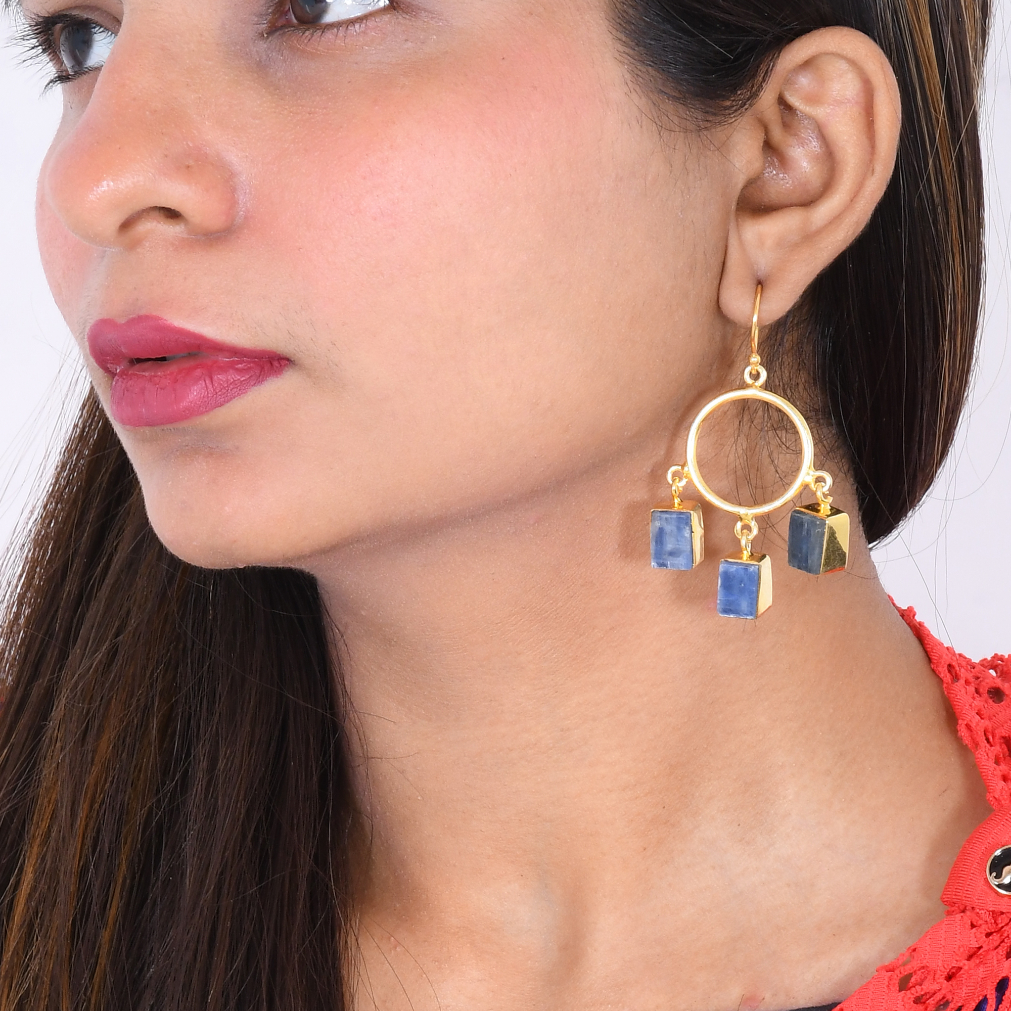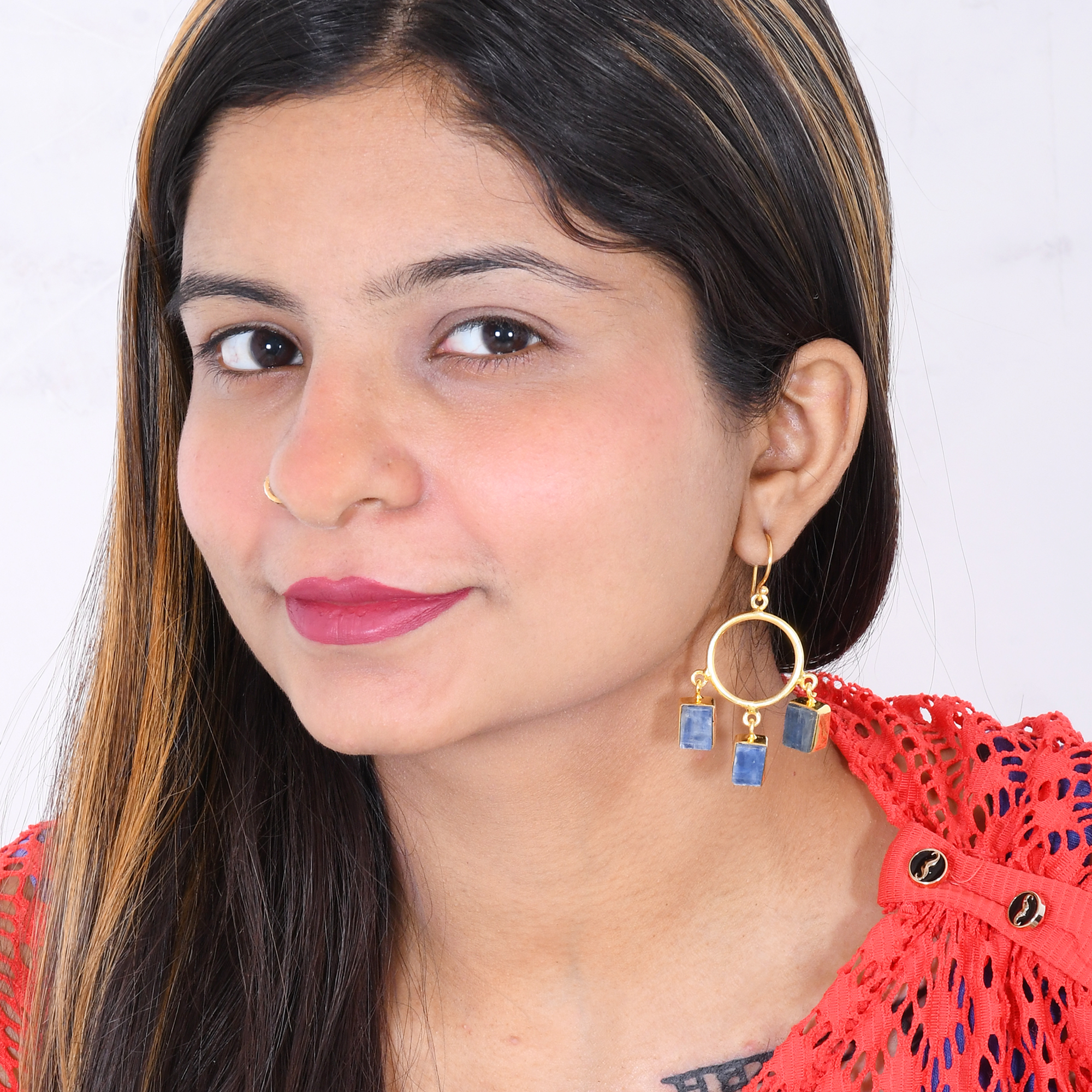 Uncut 18K Gold Plated Blue Kyanite Gemstone Chandelier Earrings