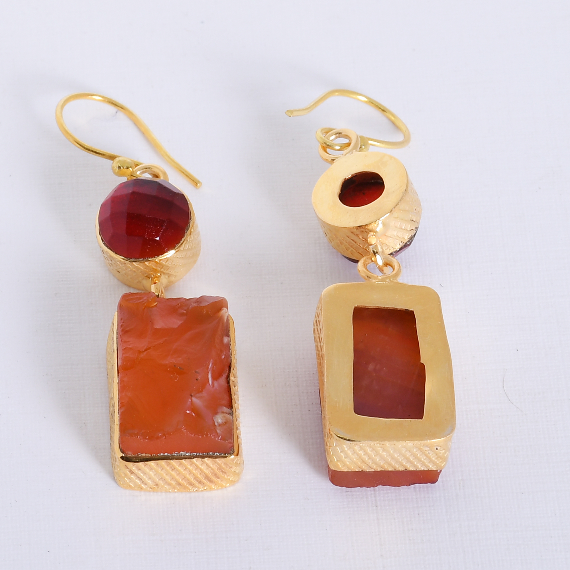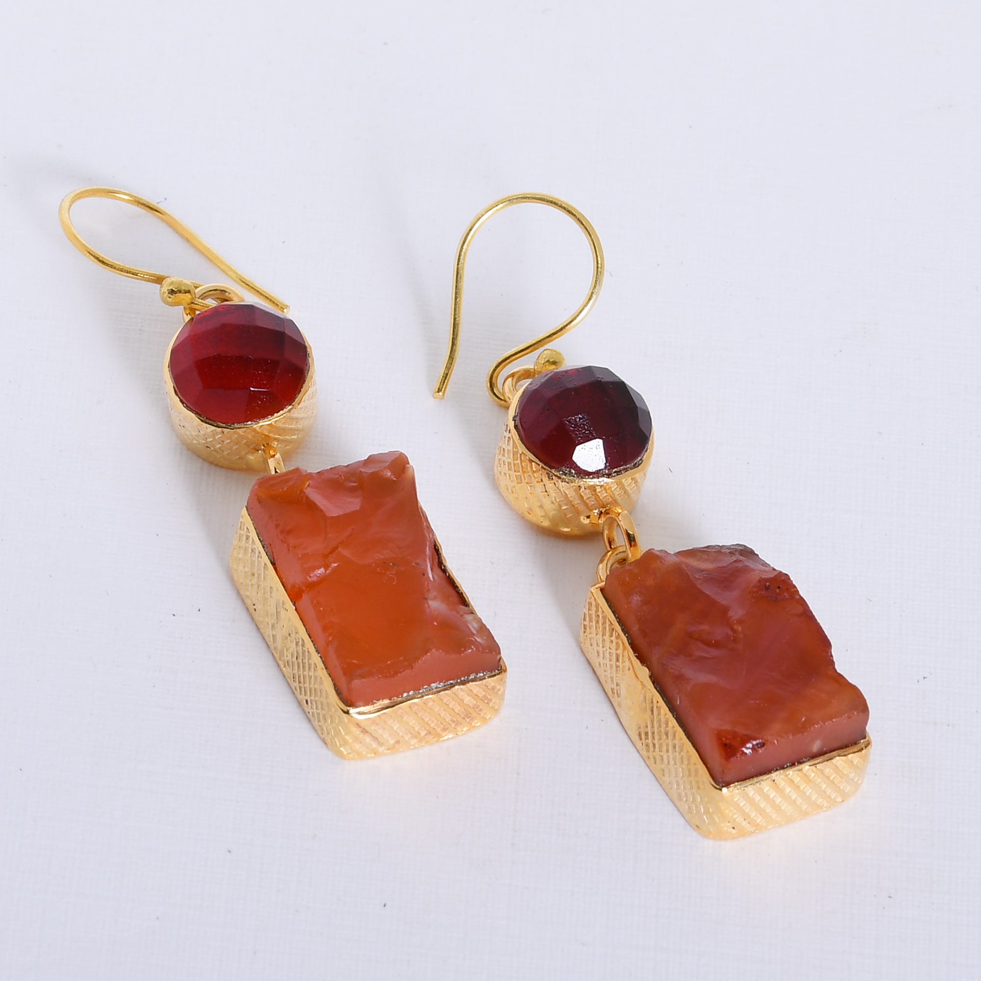 One-of-a-Kind Natural Carnelian And Garnet Birthstone Fashion Earrings