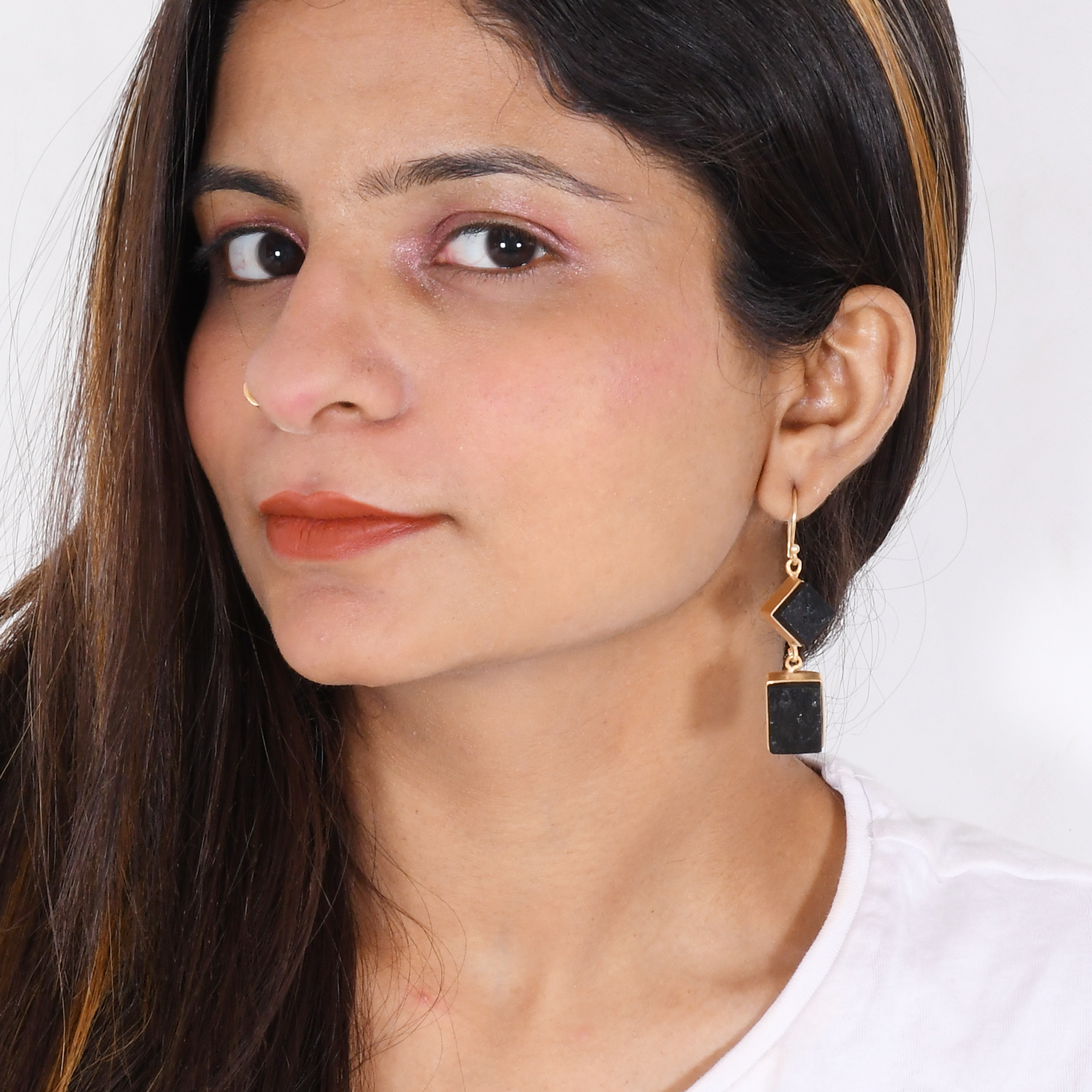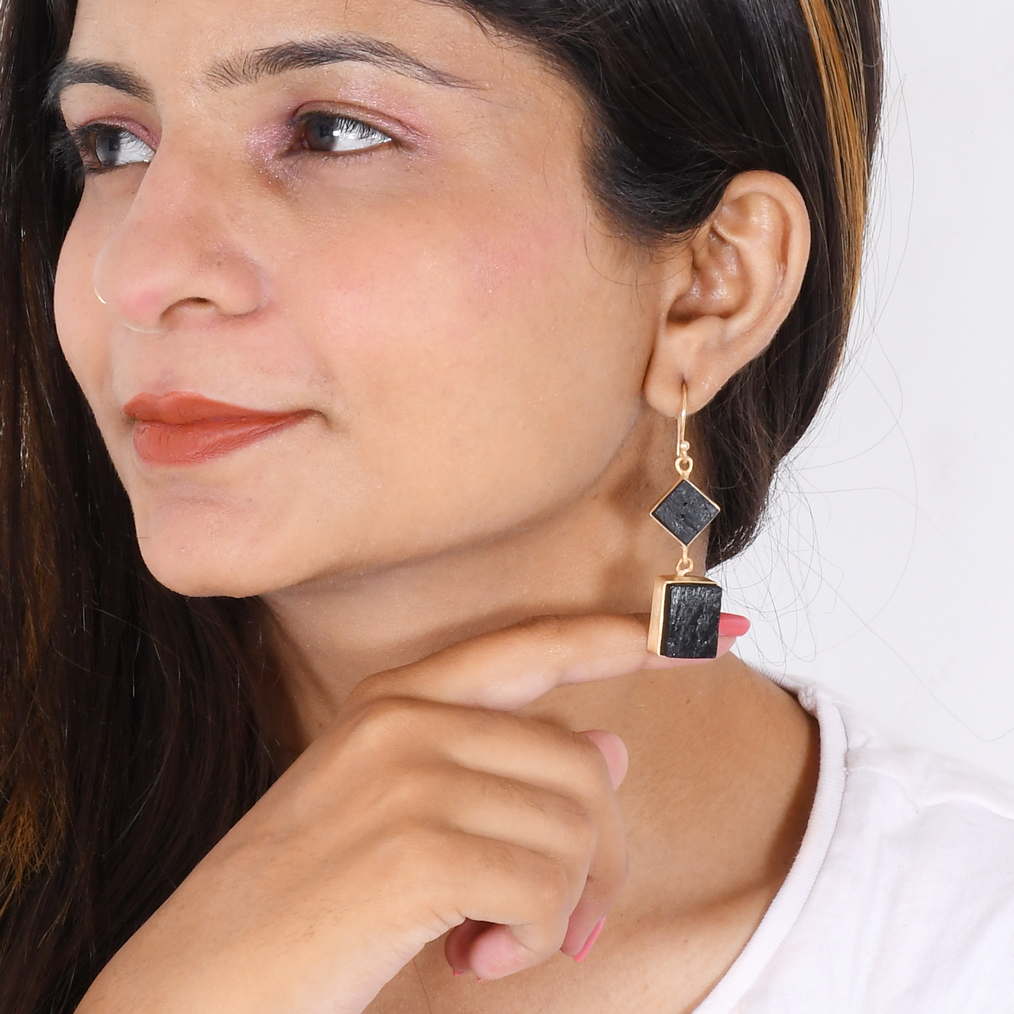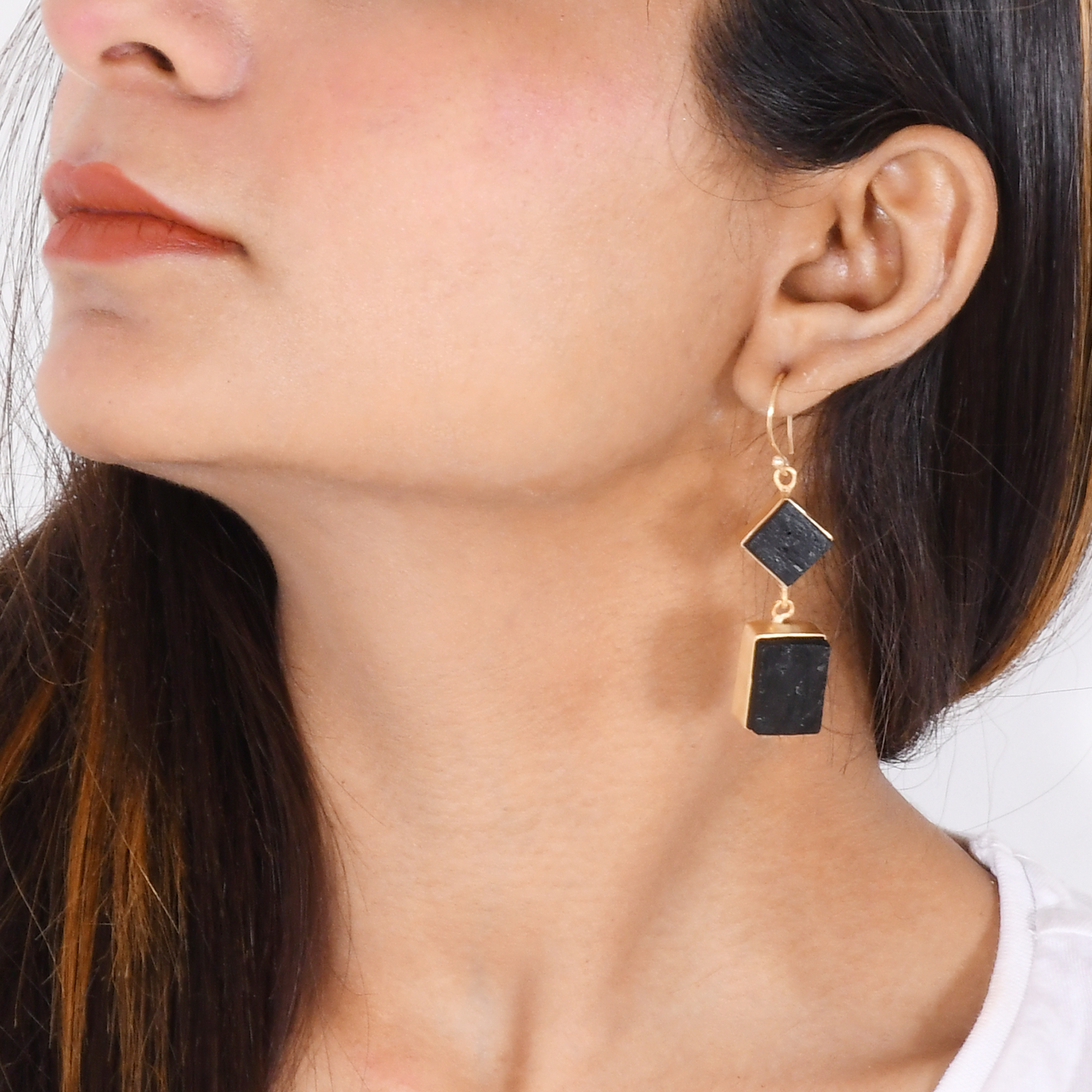 Classic geometric designs are perfect to add a bit of glamour to your everyday style. Handmade using black tourmaline these raw mineral earrings are lightweight and completely affordable.