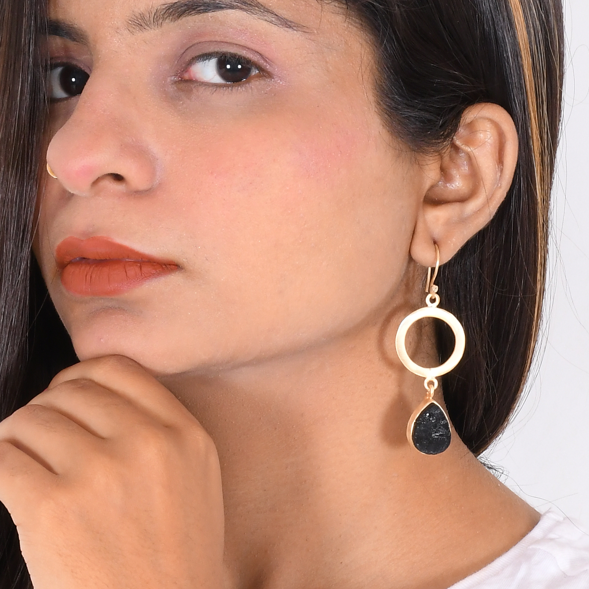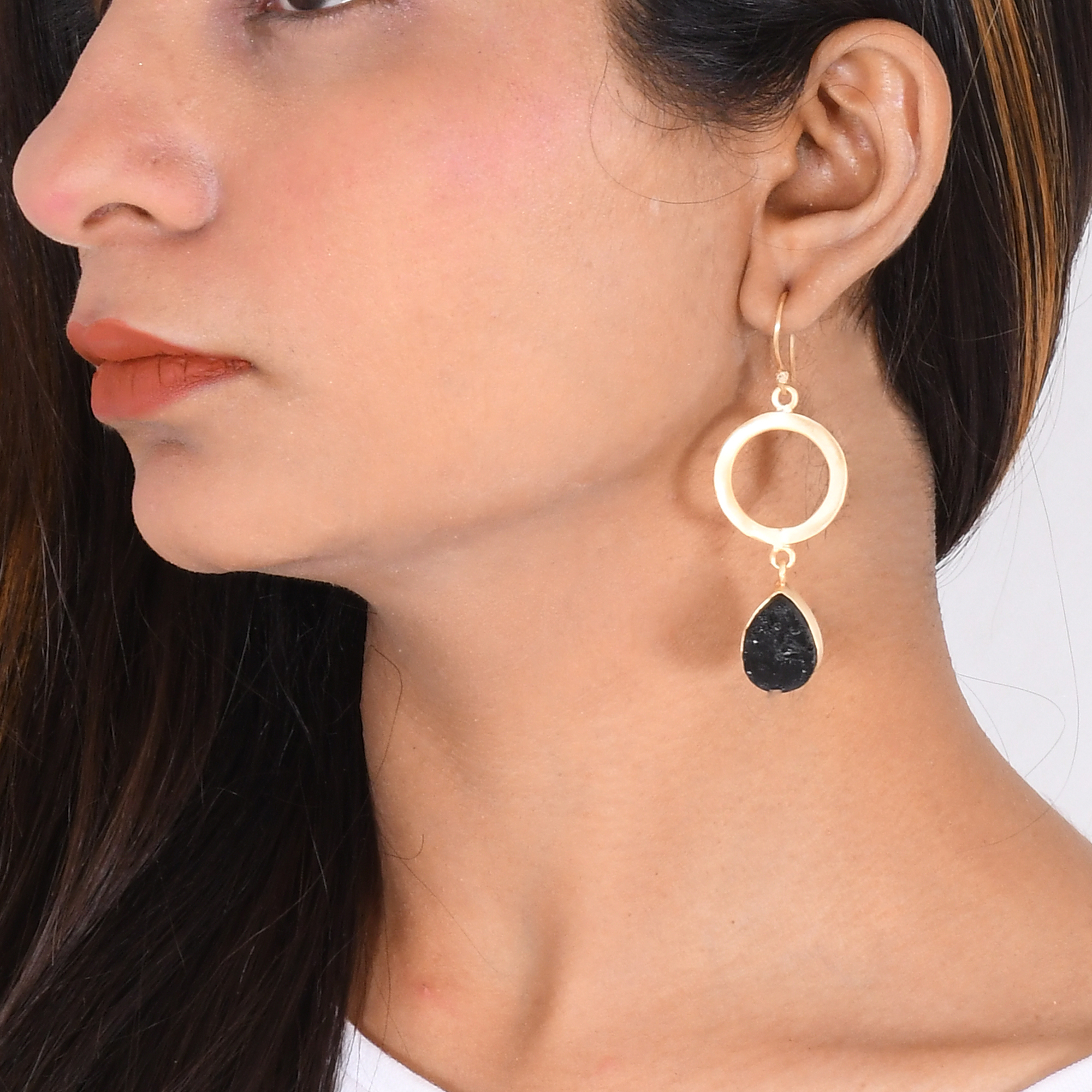 Bohemian chic these lightweight brass earrings are completely handmade and studded with a black tourmaline gemstone in a classic teardrop shape. The dangle design facilitates movement and is comfortable to wear all day.