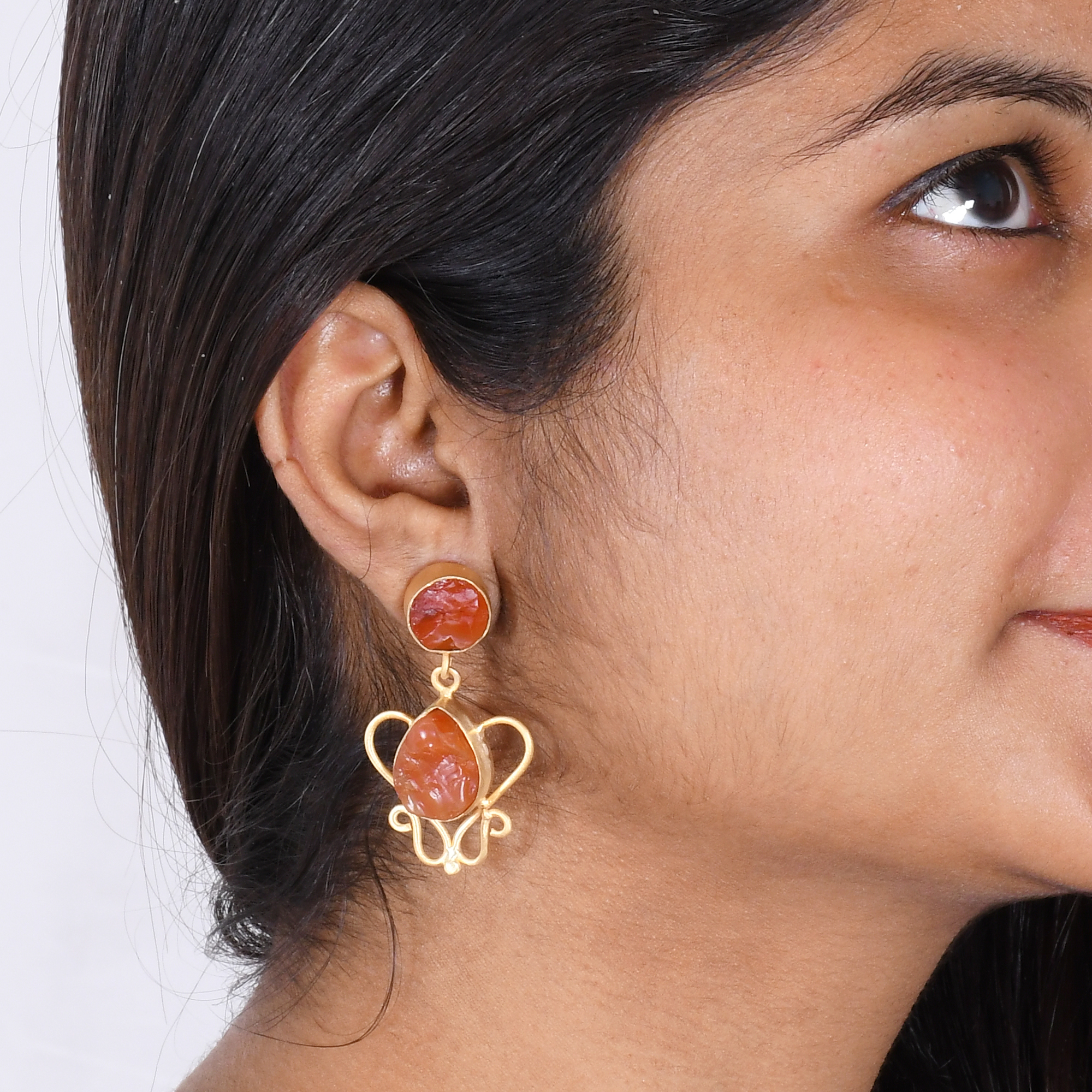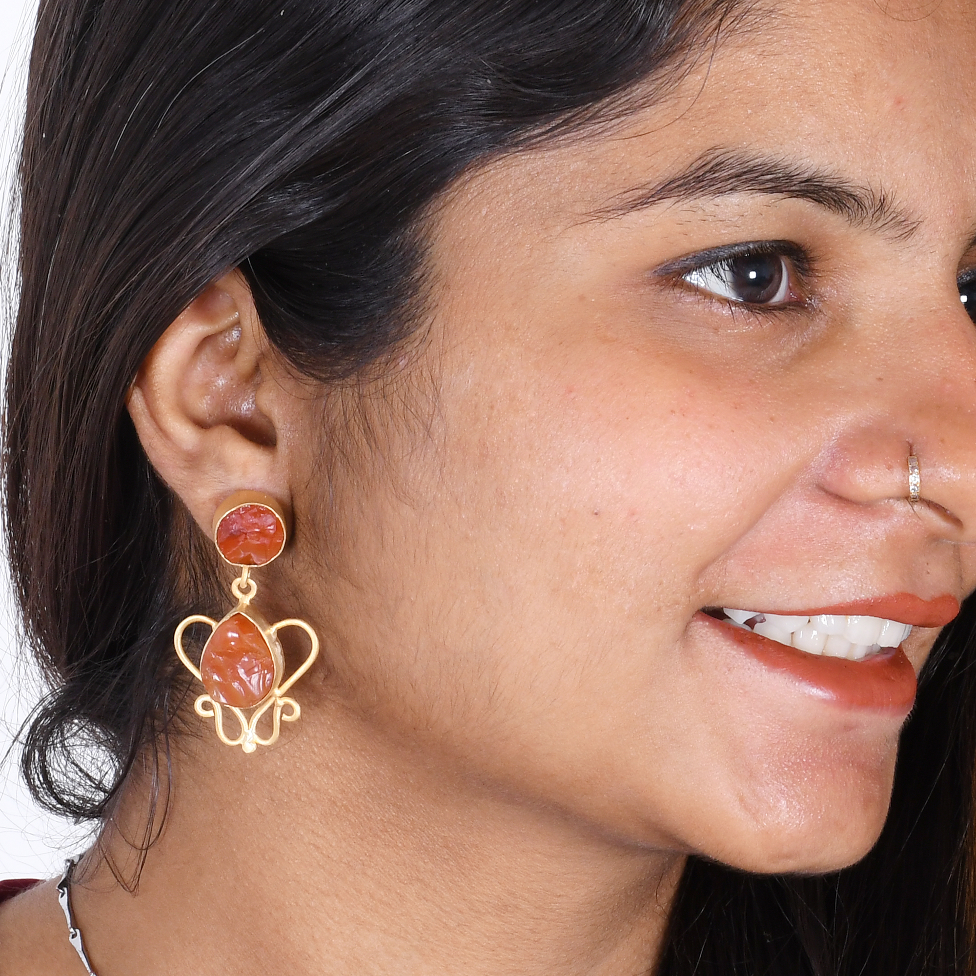 Stunning 18K Yellow Gold Plated Real Carnelian Gemstone Designer Earrings