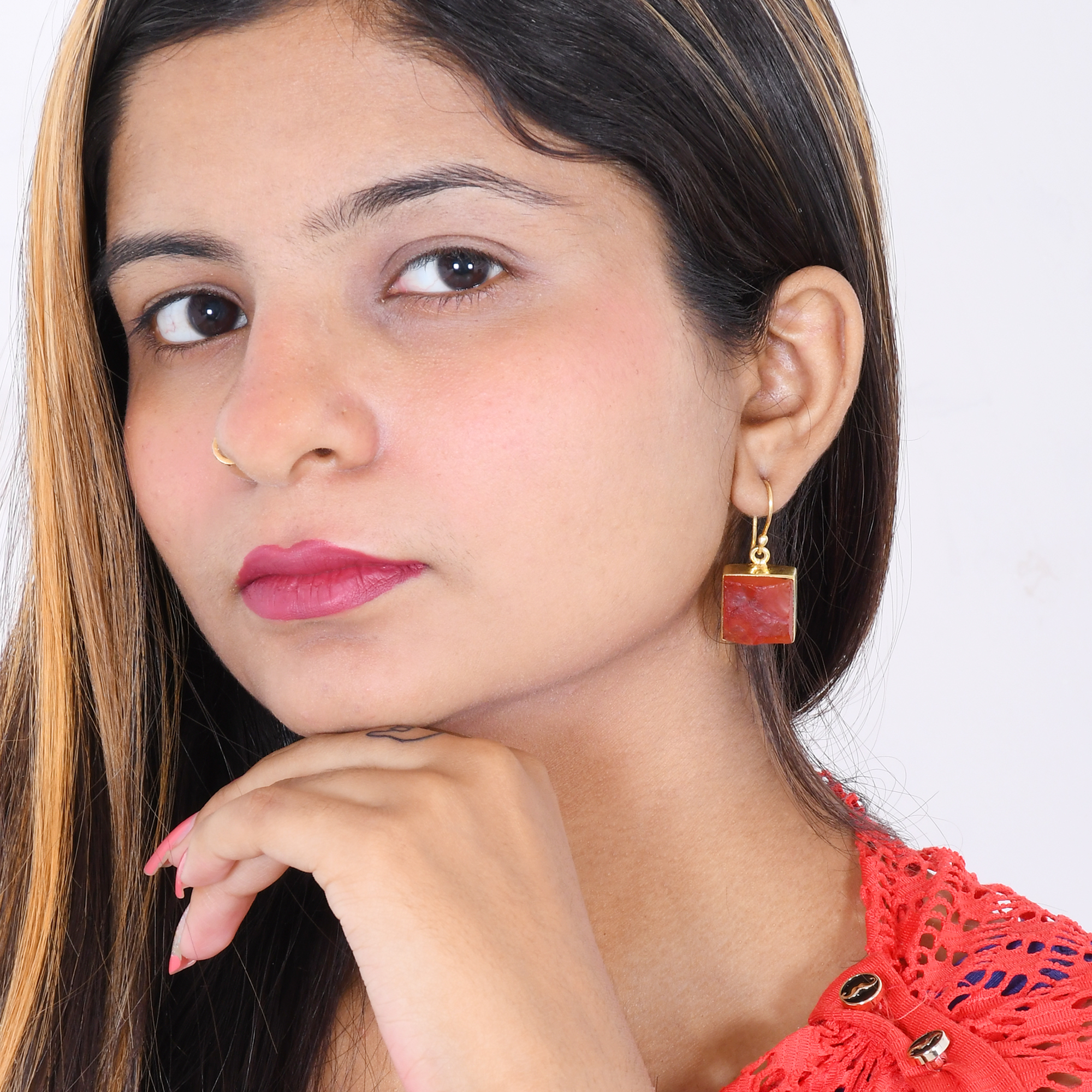 Organic Carnelian Gemstone Drop Earrings For Women