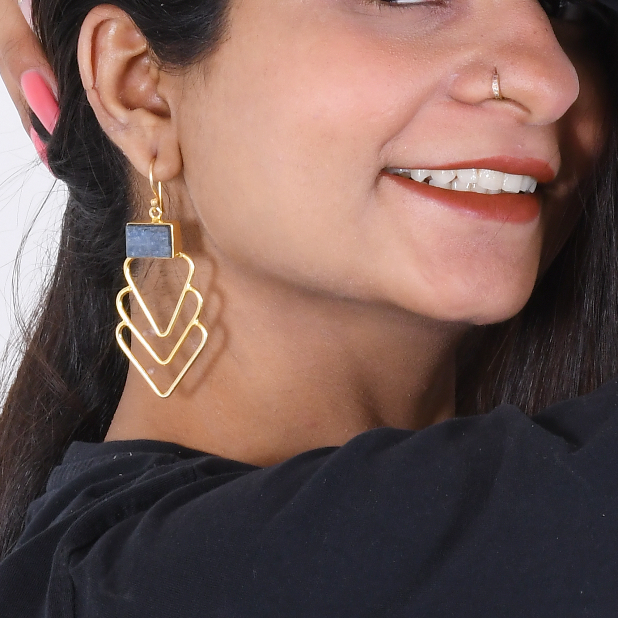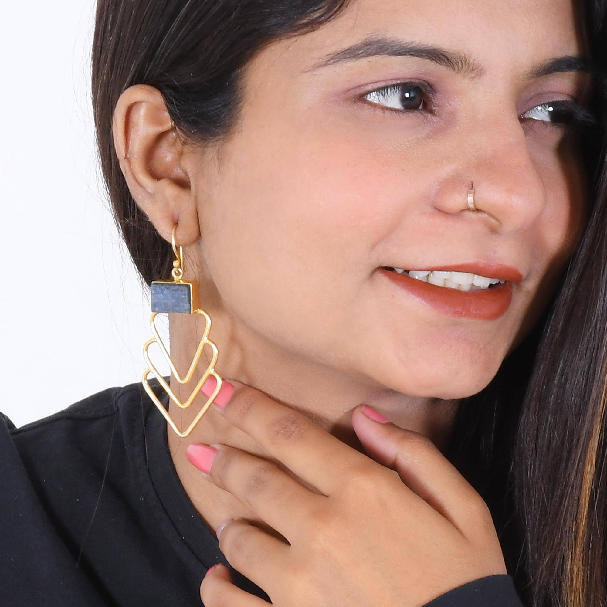 The raw appeal of Blue Kyanite is well paired with 18k yellow gold plated design. The handmade bezel set earring makes a stunning gift for your beautiful wife.