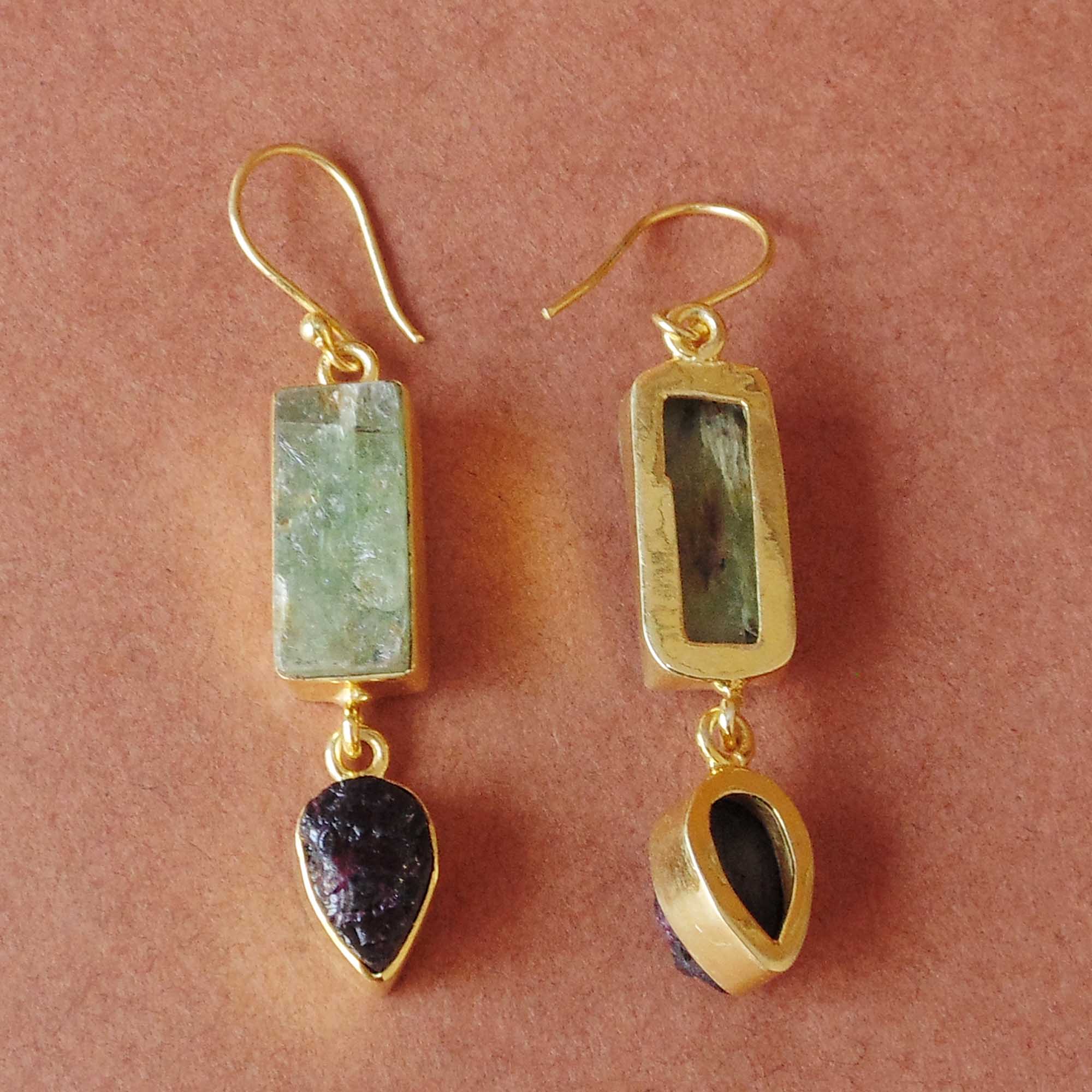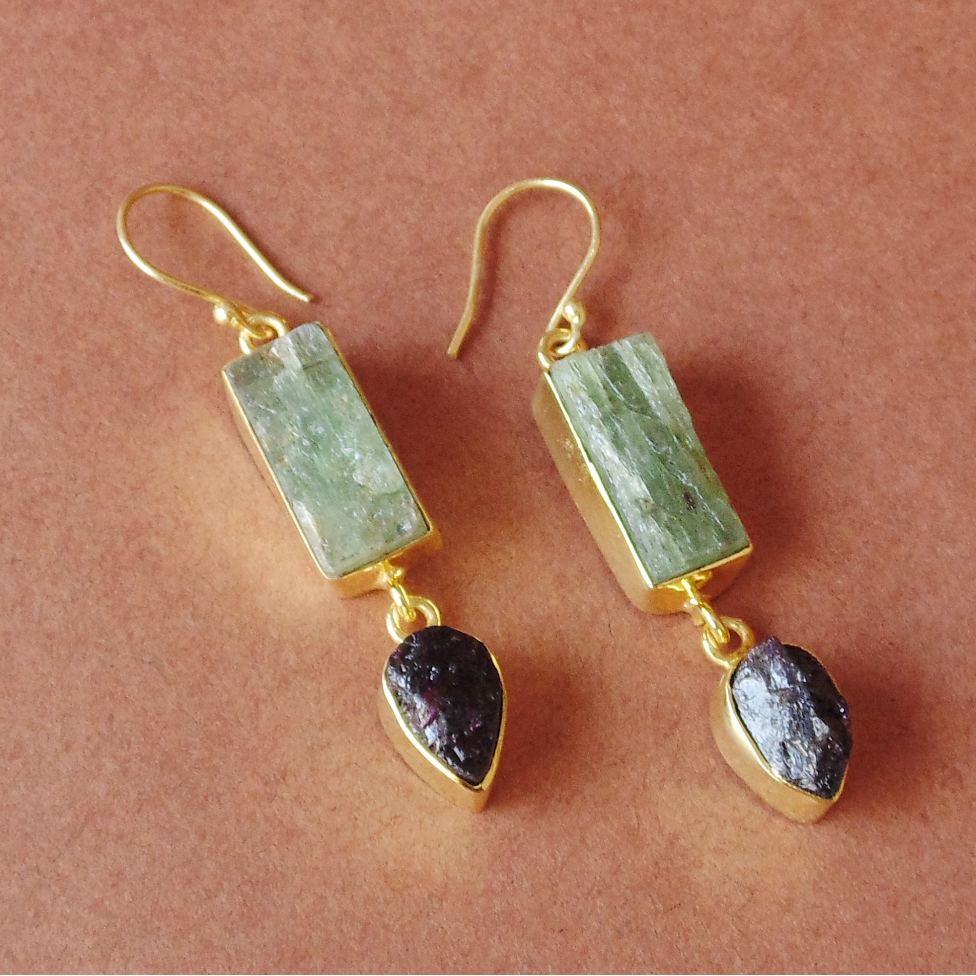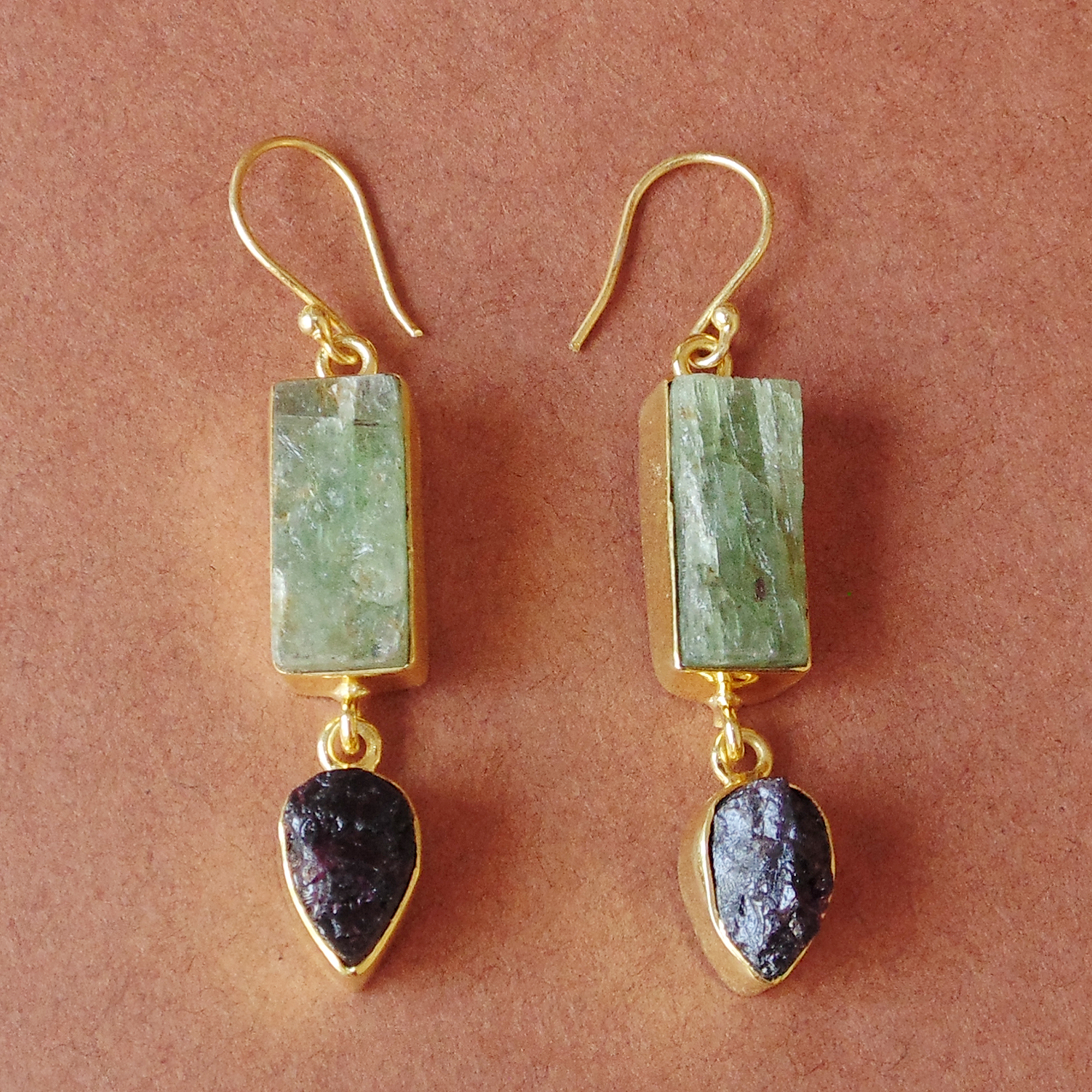 Natural Green Kyanite And Garnet Dual Birthstone Stunning Earrings