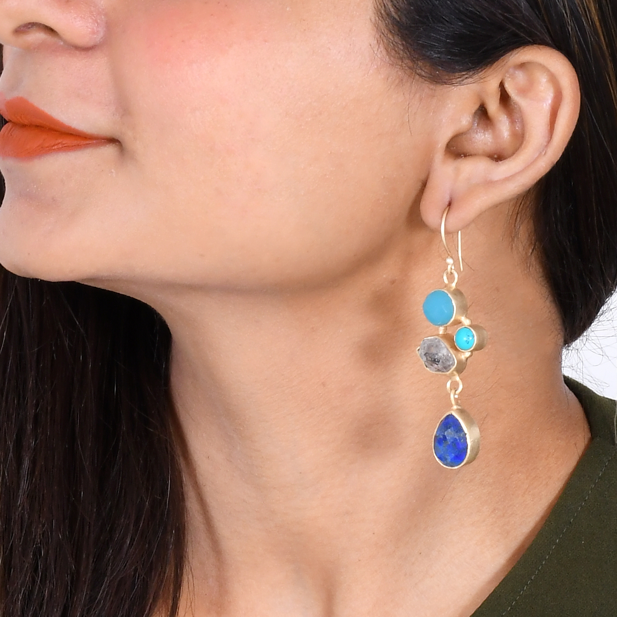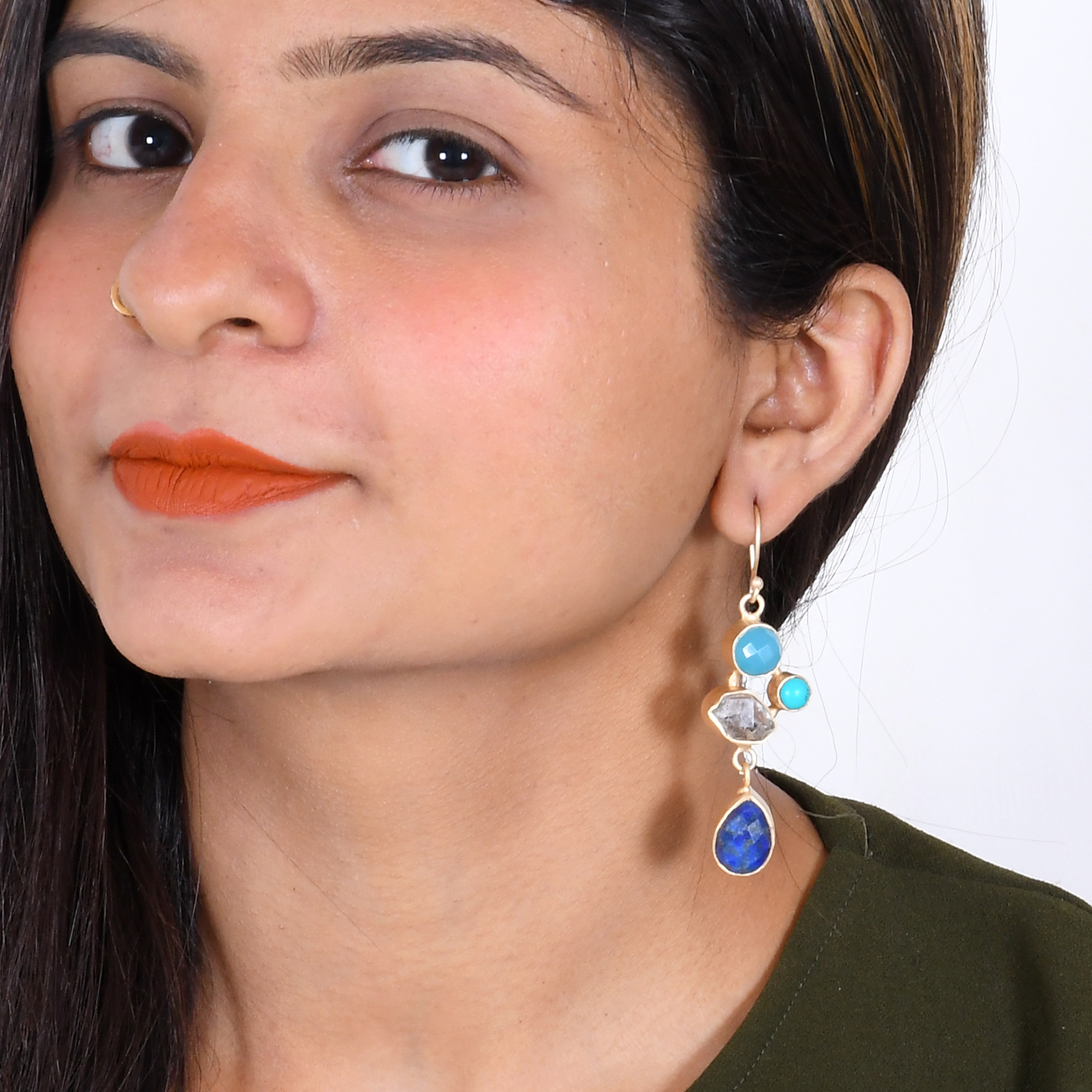 Natural Herkimer Diamond And Lapis Lazuli Multi Stone Fashion Earrings