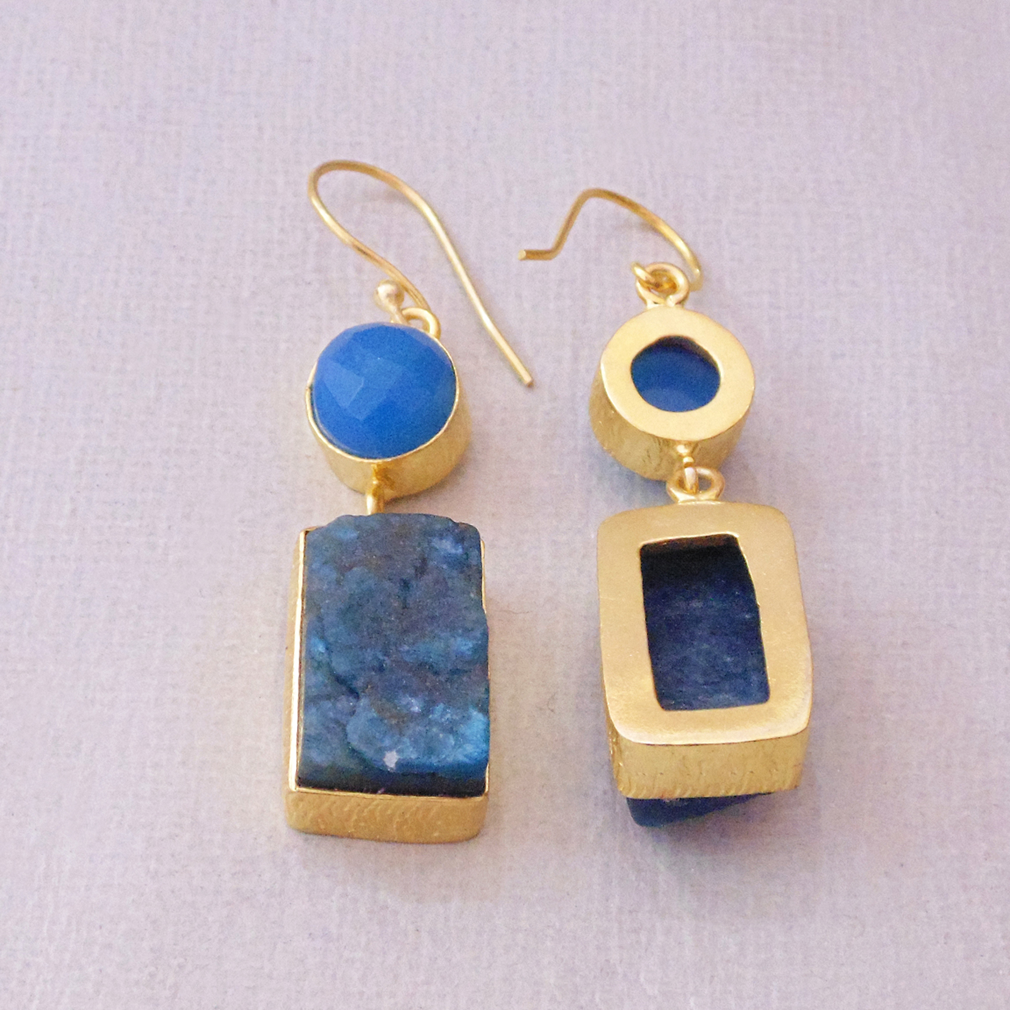 Semiprecious Blue Chalcedony And Apatite Modern Earrings