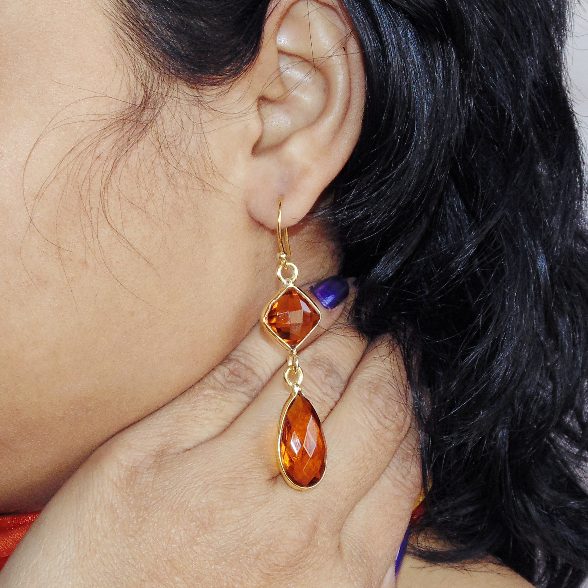 Beautiful Design Synthetic Citrine Gemstone Dangle Earrings