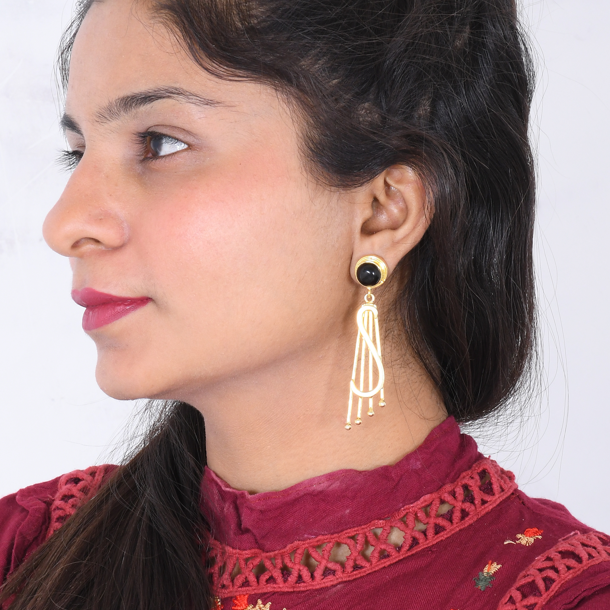 Our artisans bring to you a fabulous black onyx earring in gold vermeil that is sure to grab attention. Artisan use age old Indian methods to create the intricate brass work which is then gold plated. The unique design concept is inspired by the “Banjaras” or gypsies of Rajasthan which has been blended into a more contemporary setting. A truly wonderful choice for bridesmaids who are planning for a unique wedding.