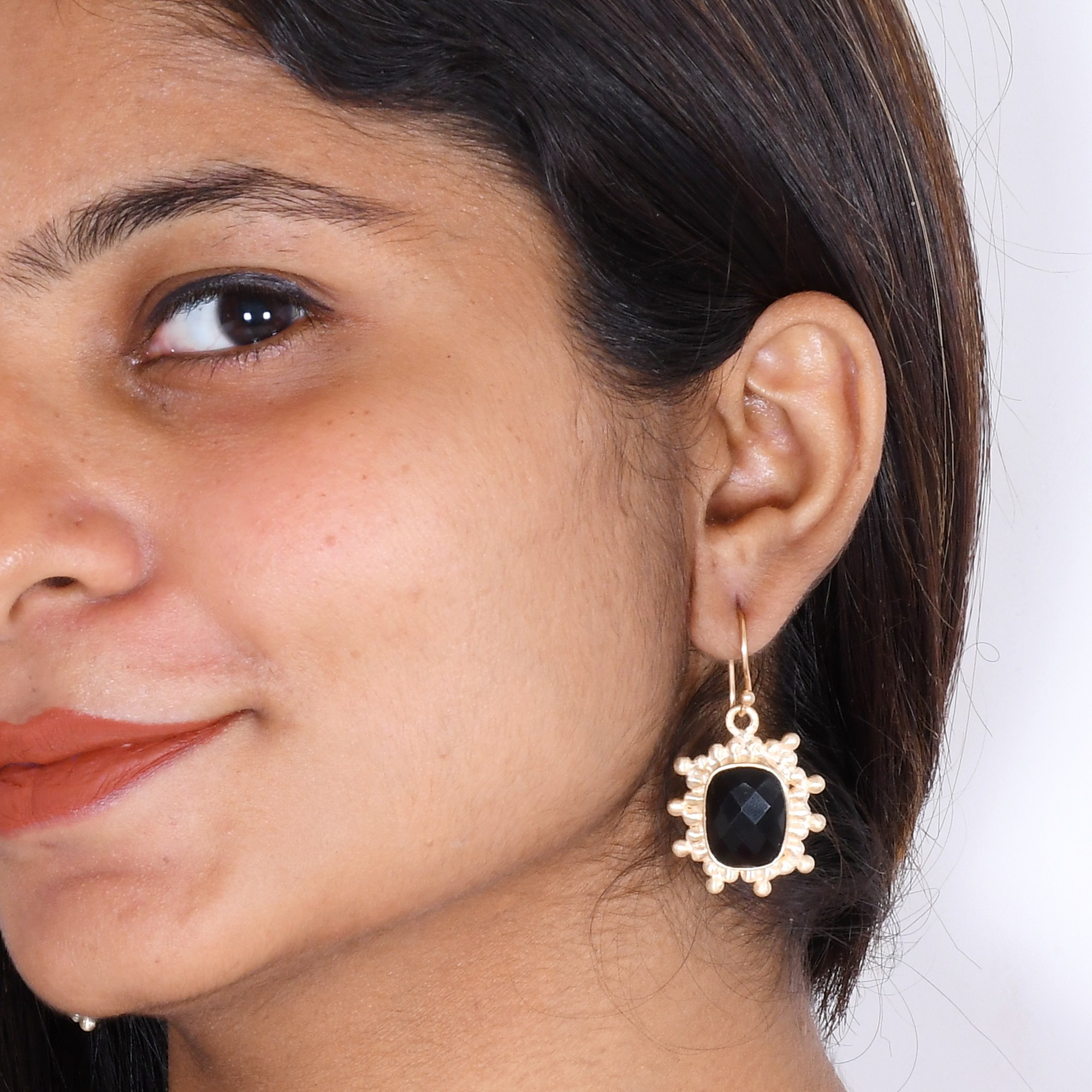 Beautifully hand-made by our Indian artisan comes this dangle earrings. They are handmade using the highest grade of brass metal and are studded with black onyx that helps to repel negative energy. The elaborate metal detailing is further enhanced by the gold plating giving it a Victorian gothic style.