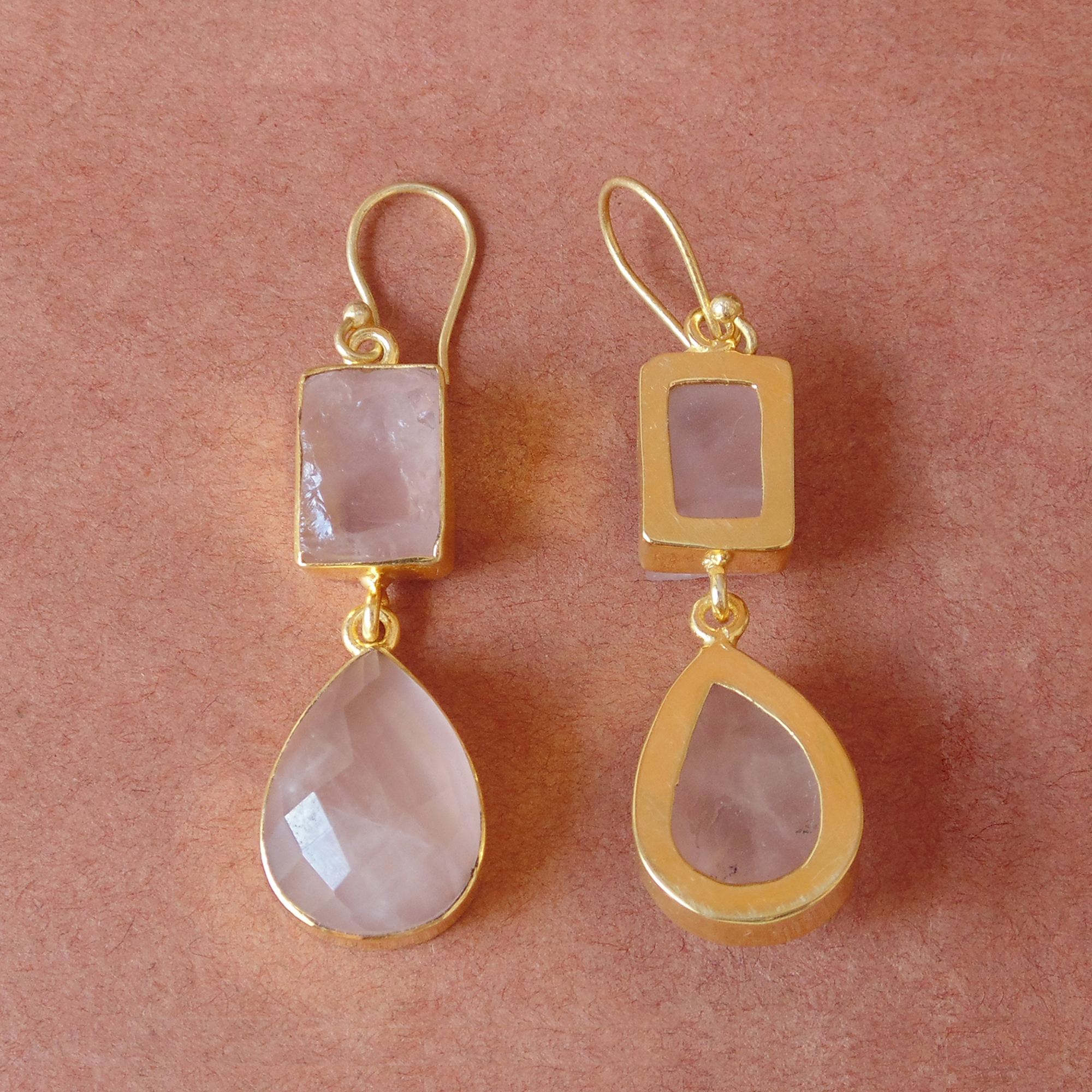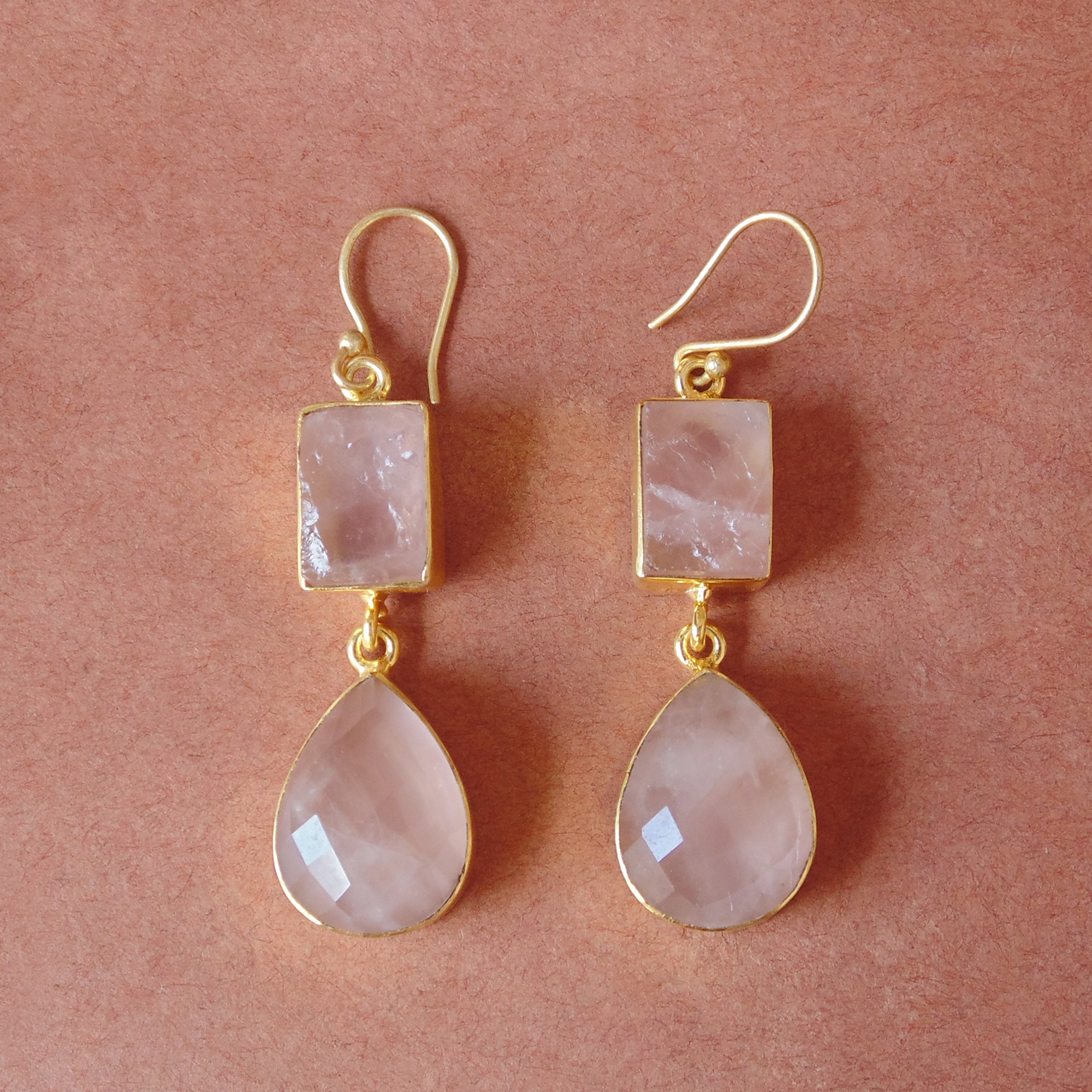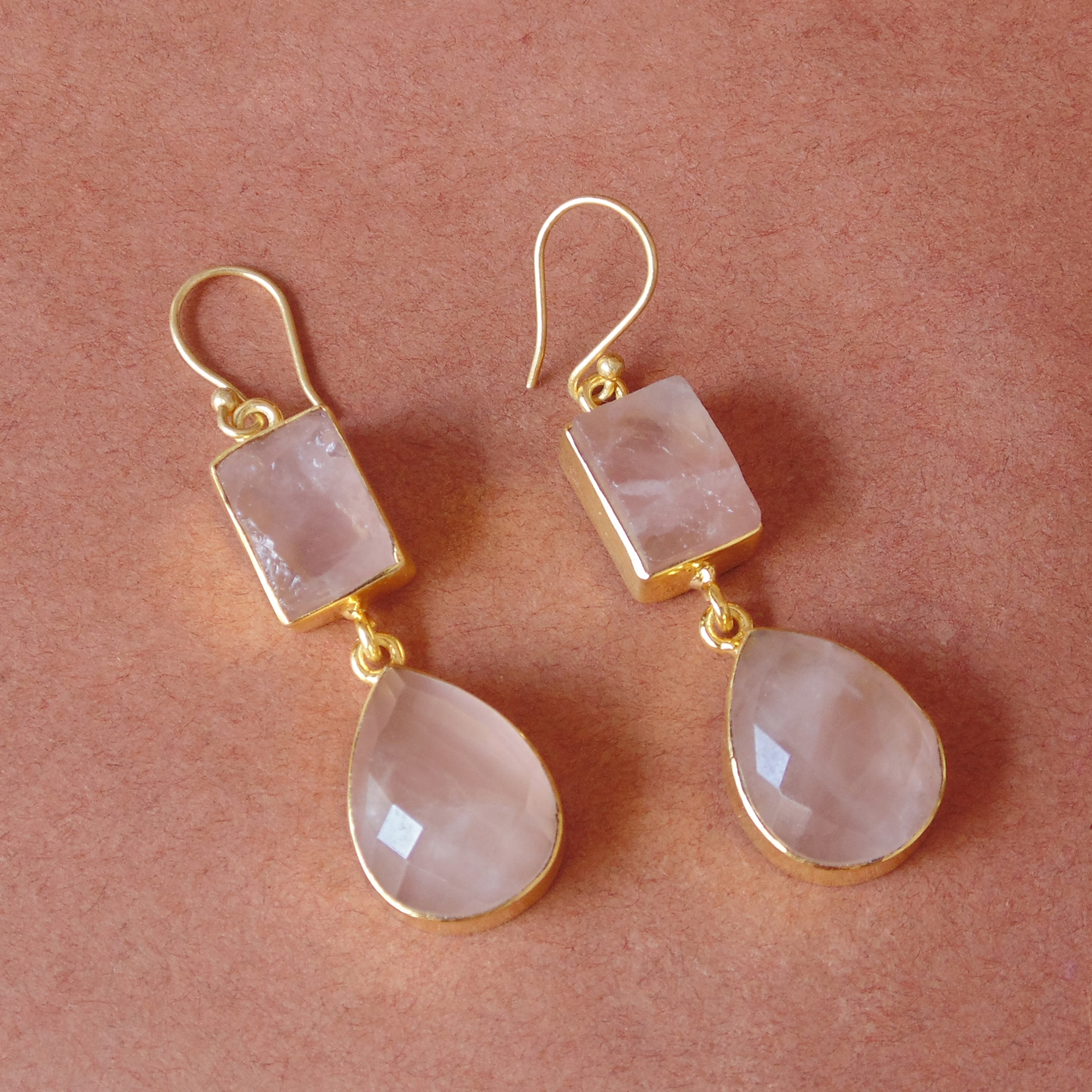 Designer 18K Gold Vermeil Natural Rose Quartz Gemstone Bridal Party Earrings