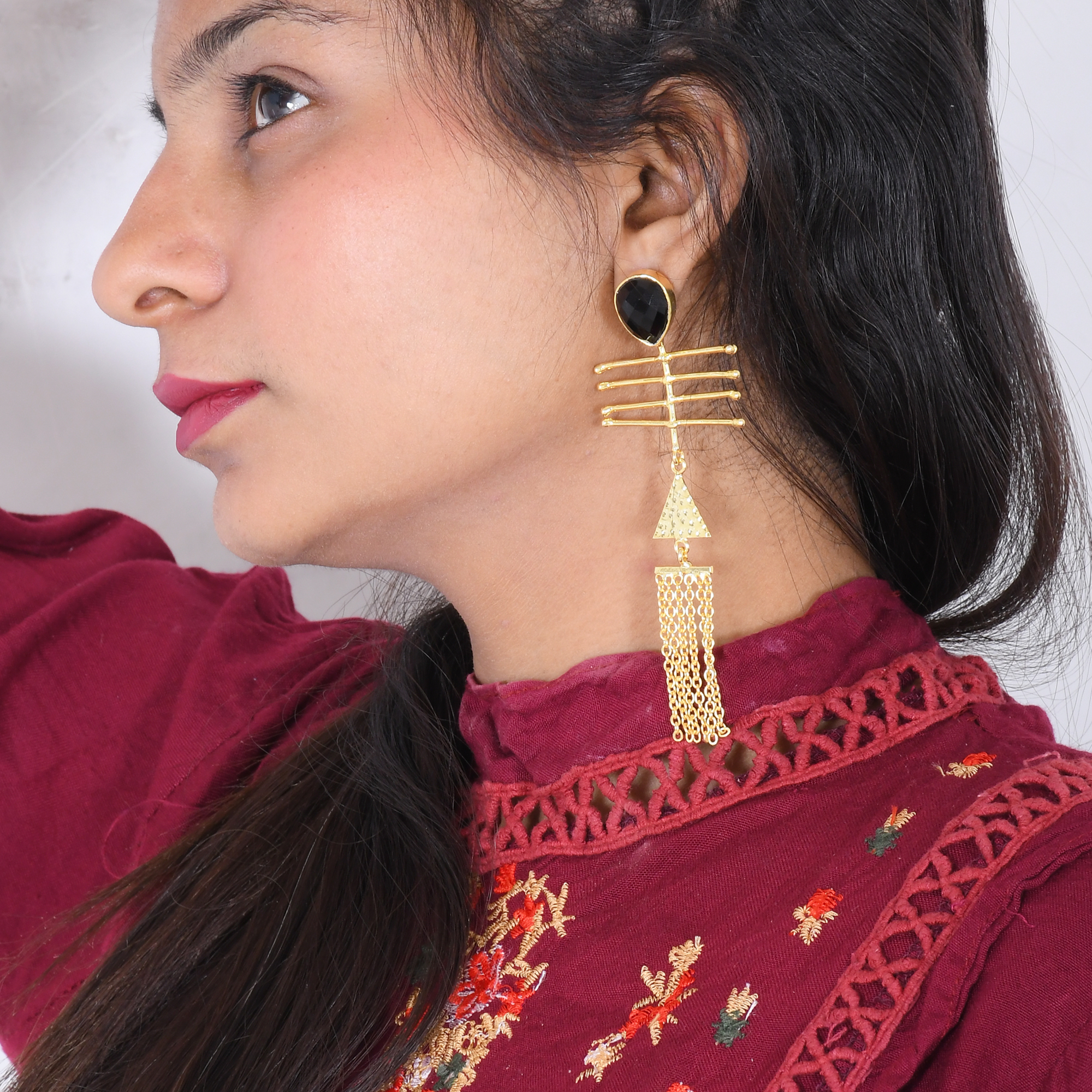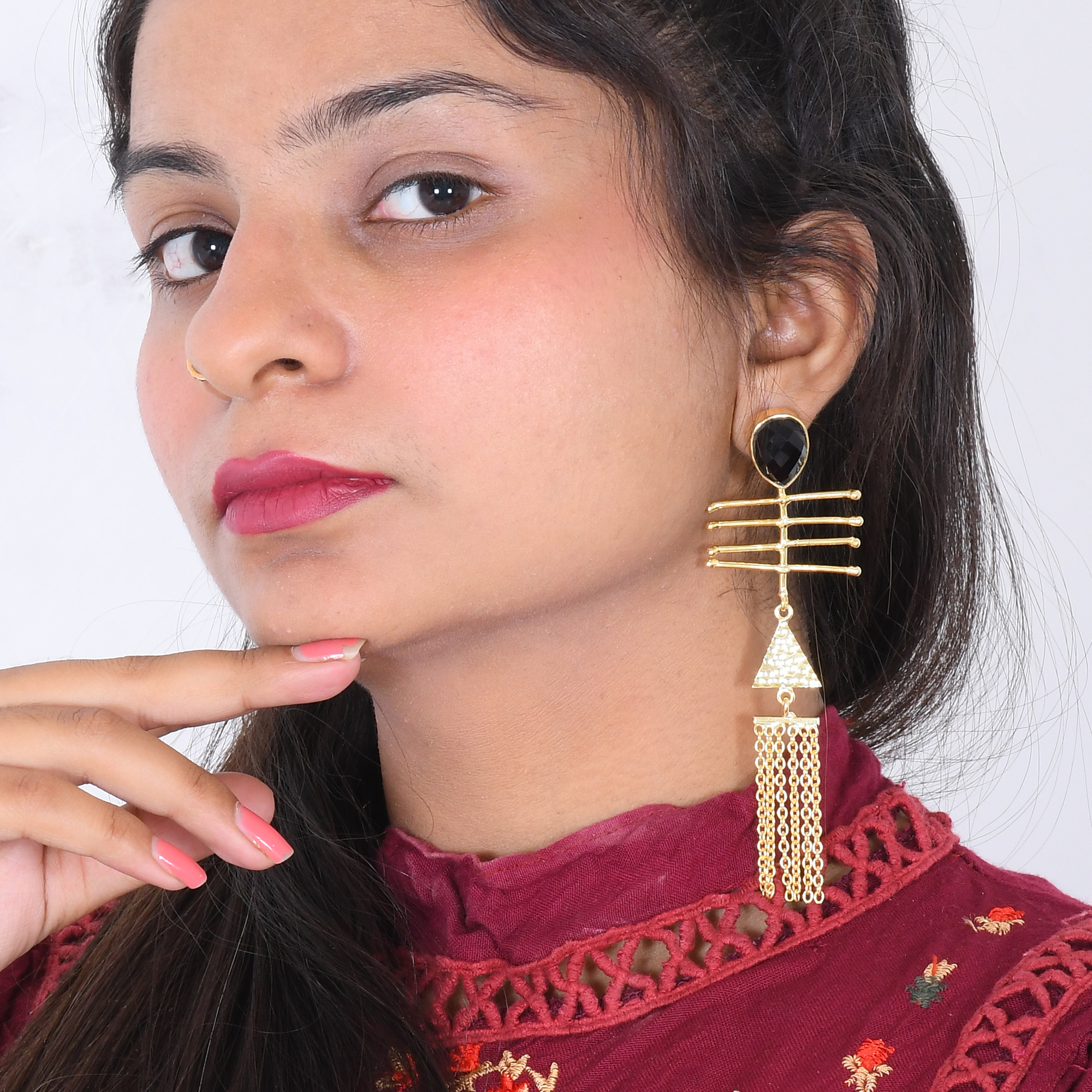 Party Wear 18K Gold Plated Black Onyx Gemstone Long Chain Earrings