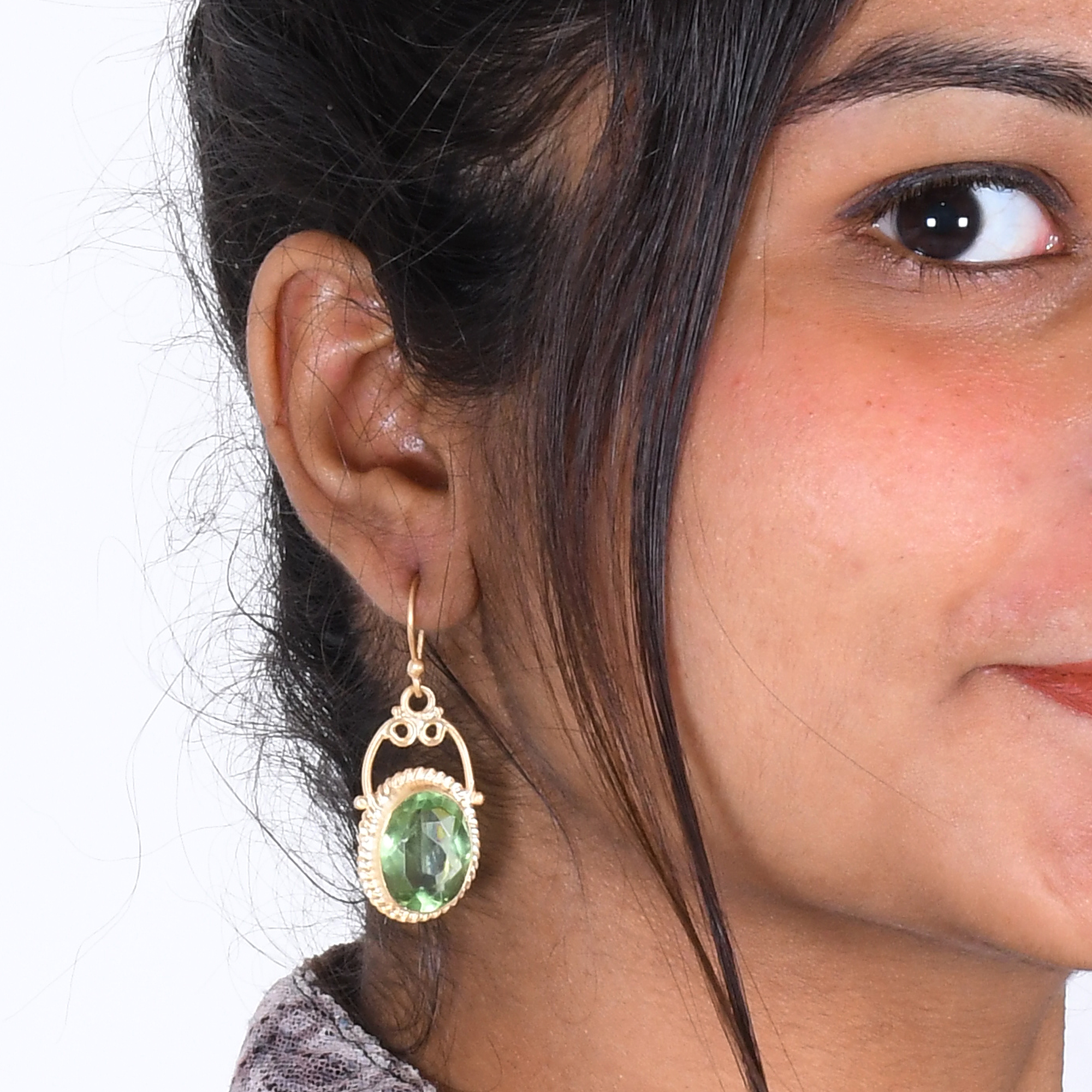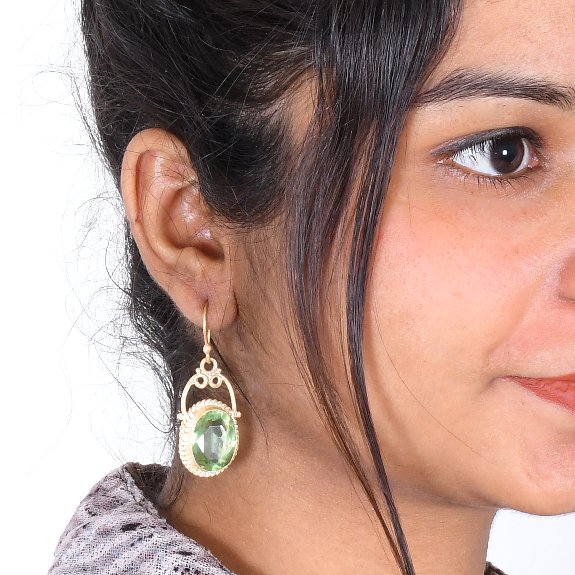 Rare and different the green amethyst quartz is not often a regular choice. Therefore it is fun to make these earrings. It is considered a highly effective healing gemstone and is also worn to gain spiritual serenity, better communication skills, higher self-esteem and a healthy body. The brass workmanship is flawless and distinctive. Durable and affordable our designs are perfect for your everyday style.