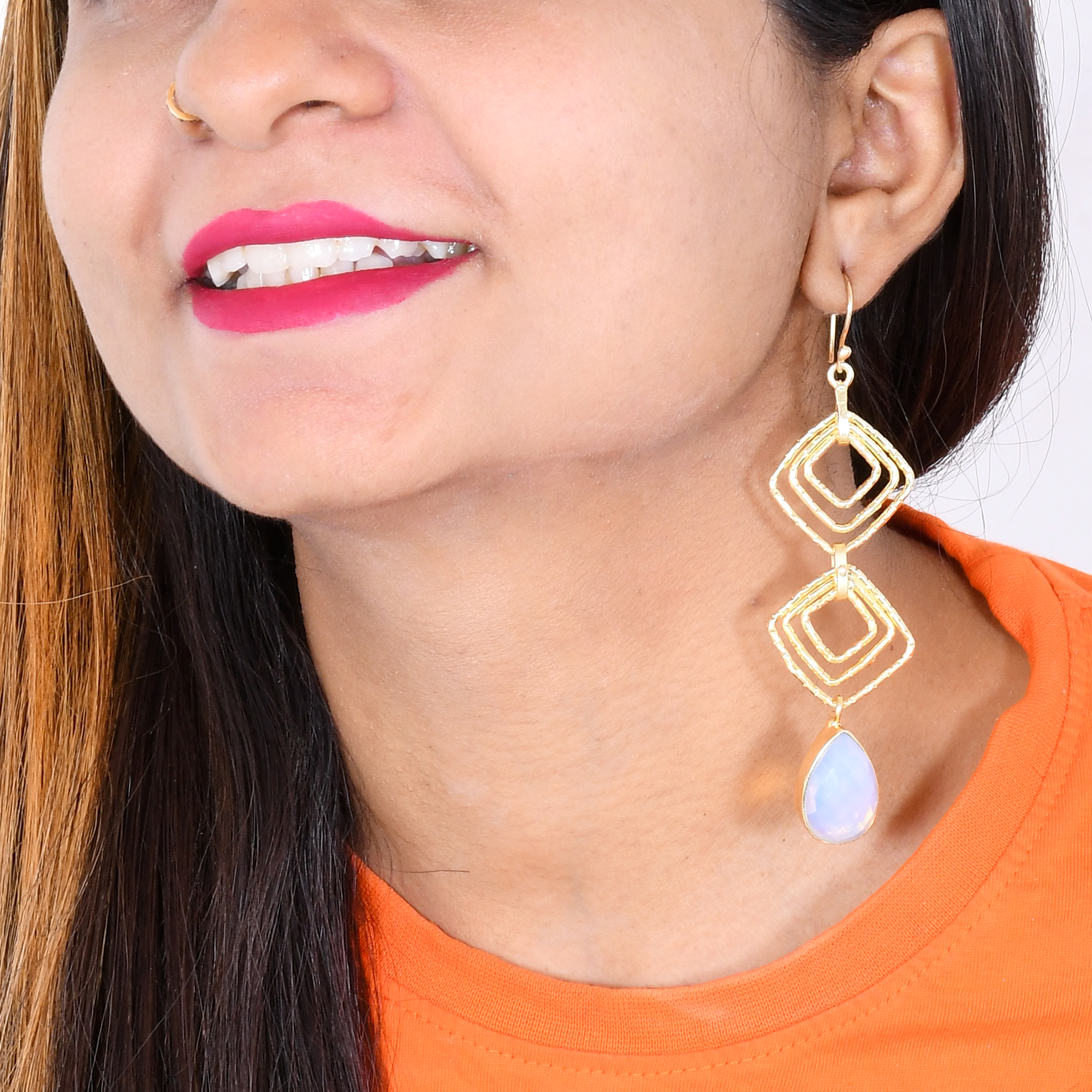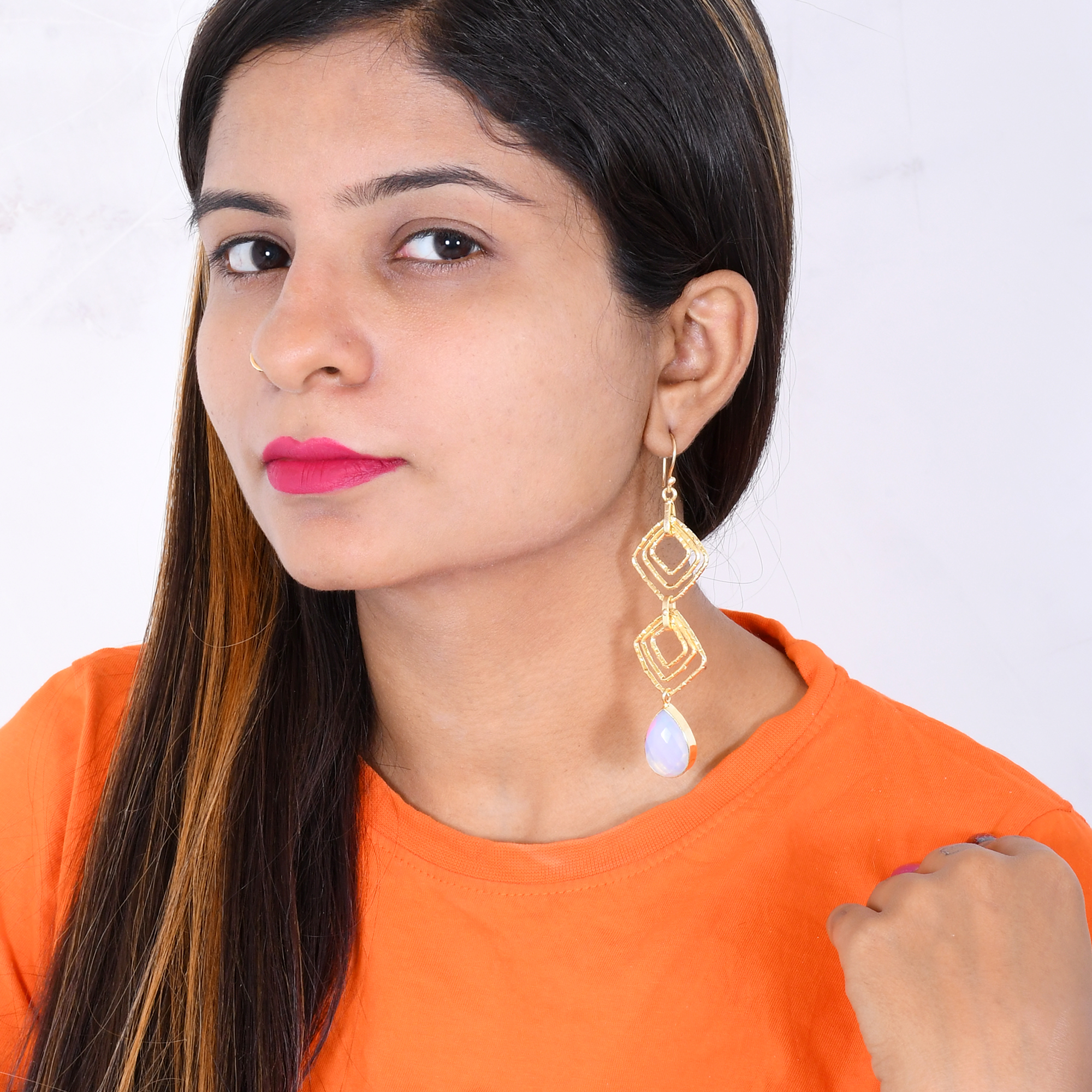 18K Matte Gold Plated Opalite Birthstone Designer Earrings