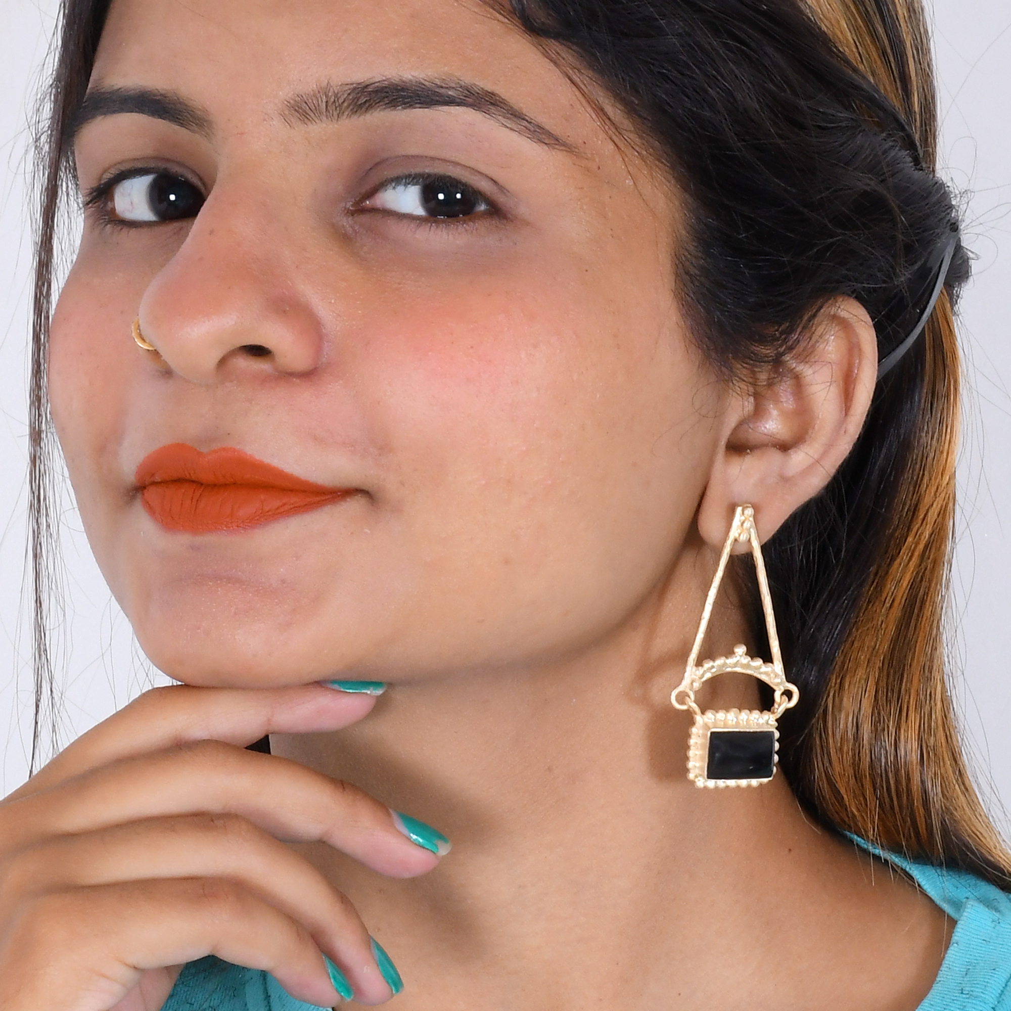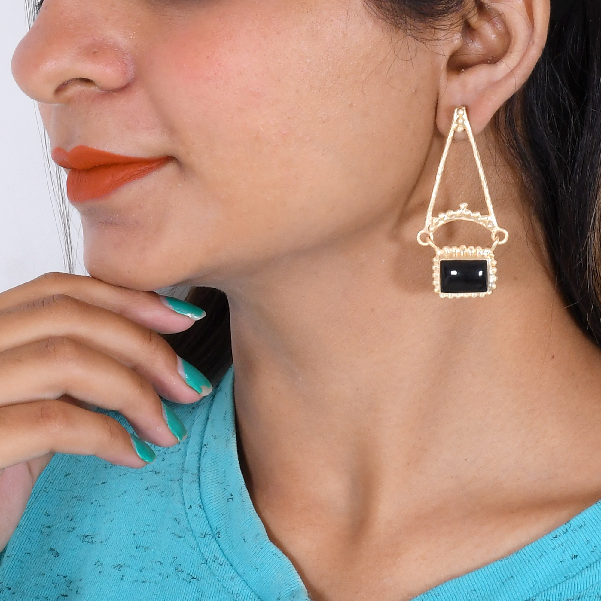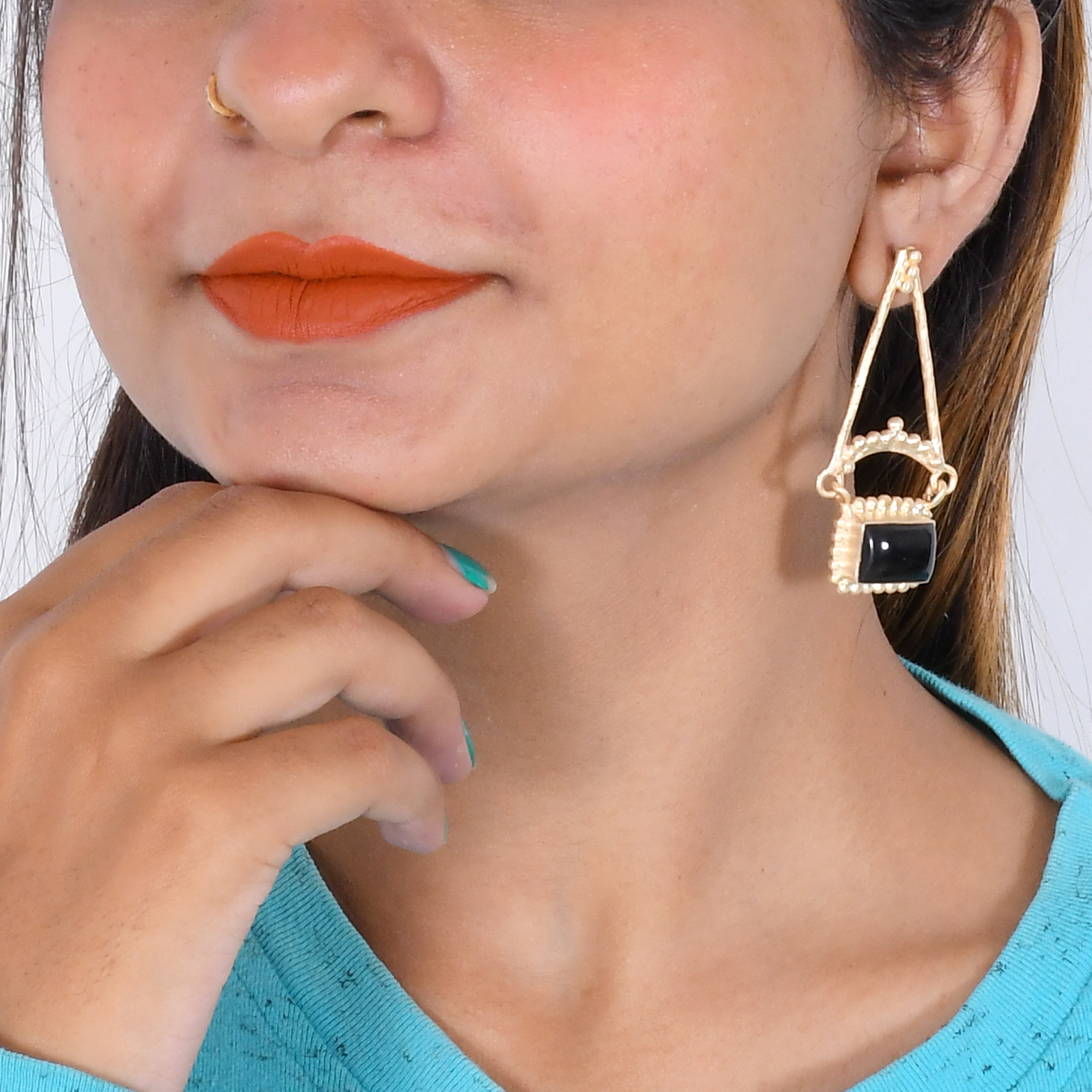Bohemian 18K Gold Plated Black Onyx Gemstone Bridal Post Earrings