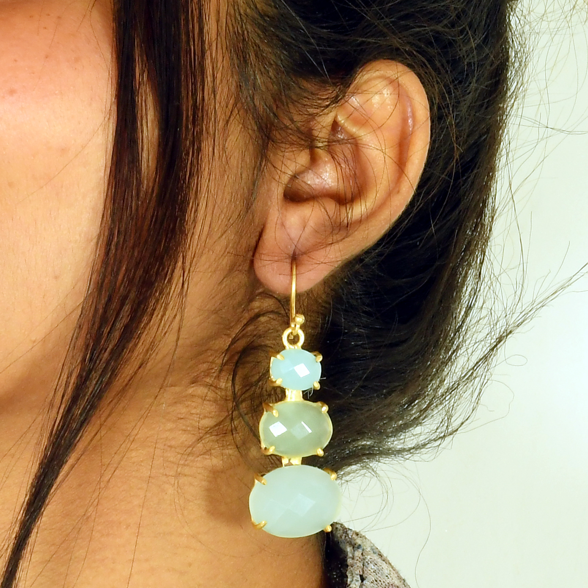We value our artistry and handcrafted beautiful designs that are made with so much love. Aqua chalcedony is such an elegant earrings that is known to stimulate the throat chakra. It can help create a spiritual pathway, to achieve mental and emotional stability and is a perfect gift for Mother's Day.