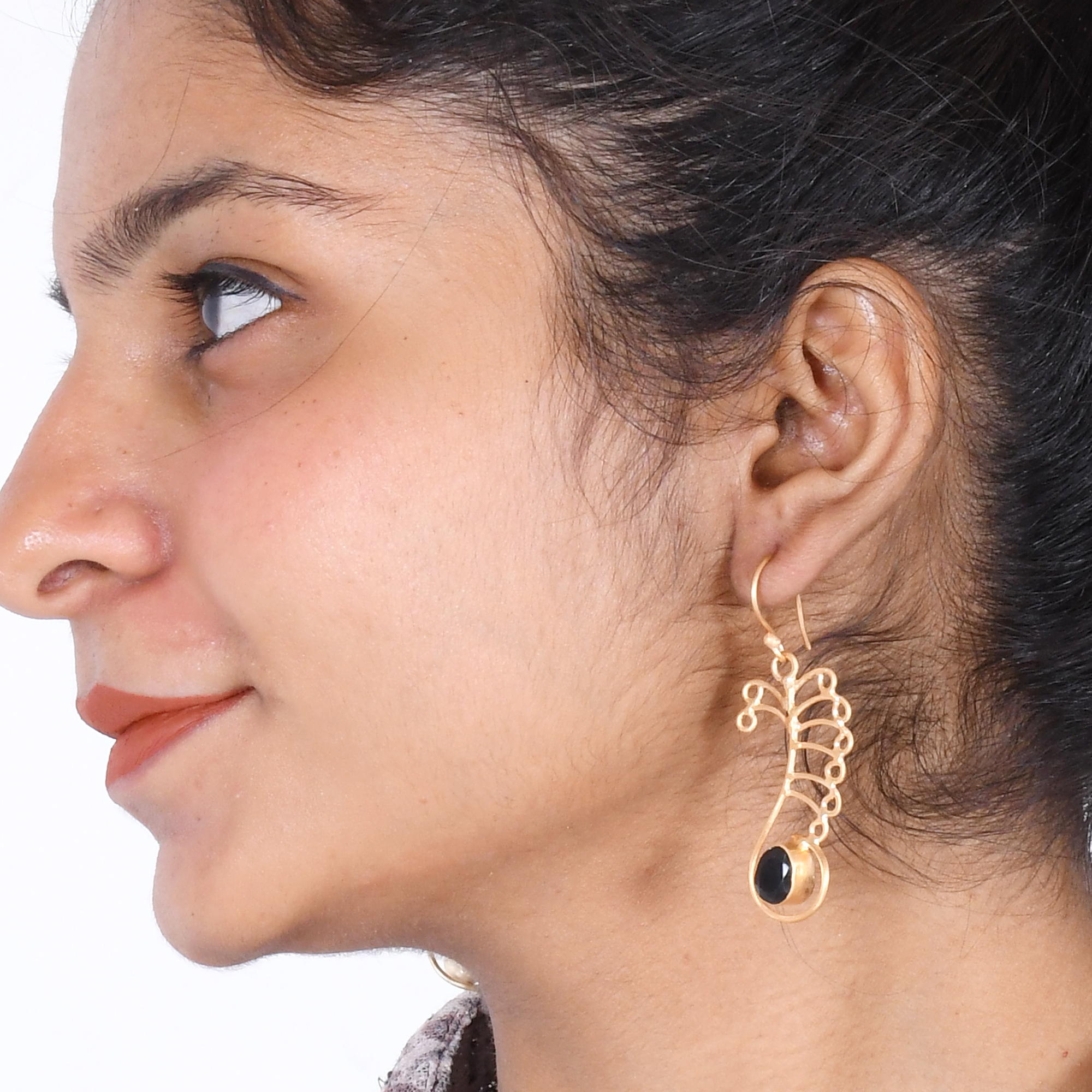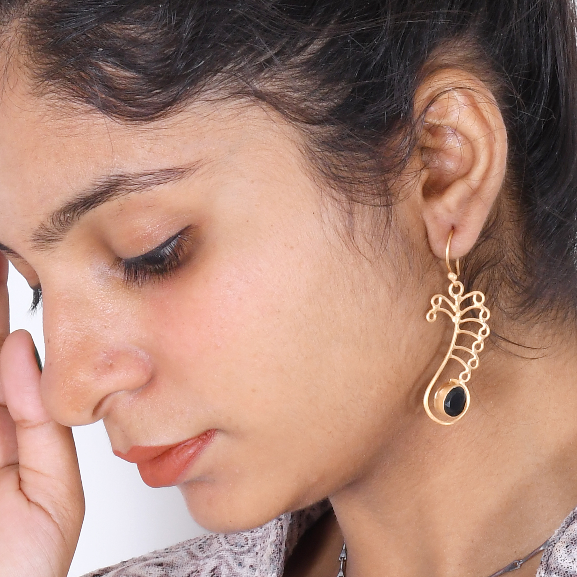 We bring you handcrafted brilliance of our fine craftsmanship using only the best naturally sourced gemstones. Surprise her this holiday season with this stunning limited edition earring. Inspired by the sea-horse this wire twisted design is a creative earring that is lightweight and encrusted in black onyx. Wear them out or gift a friend they are something that is truly special.