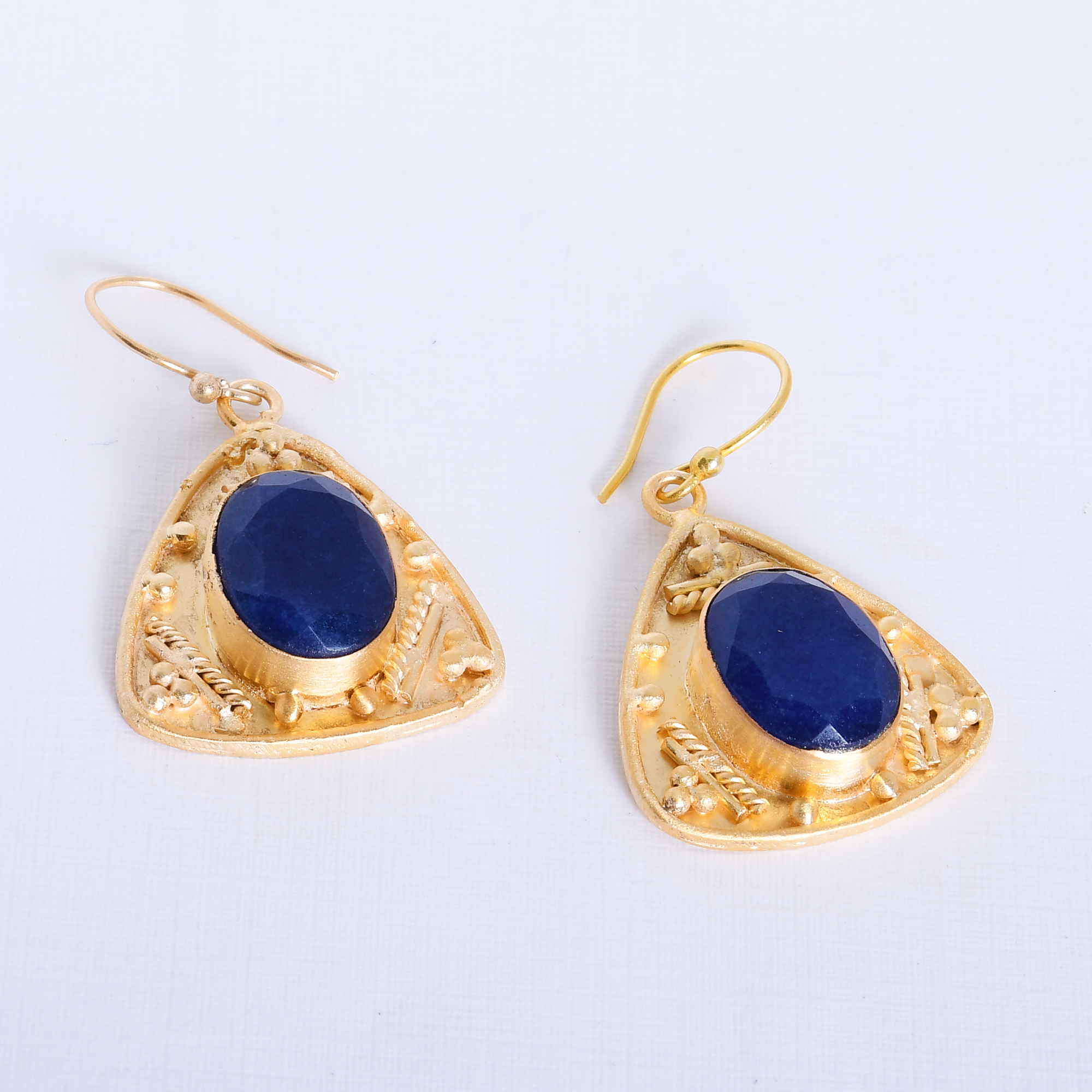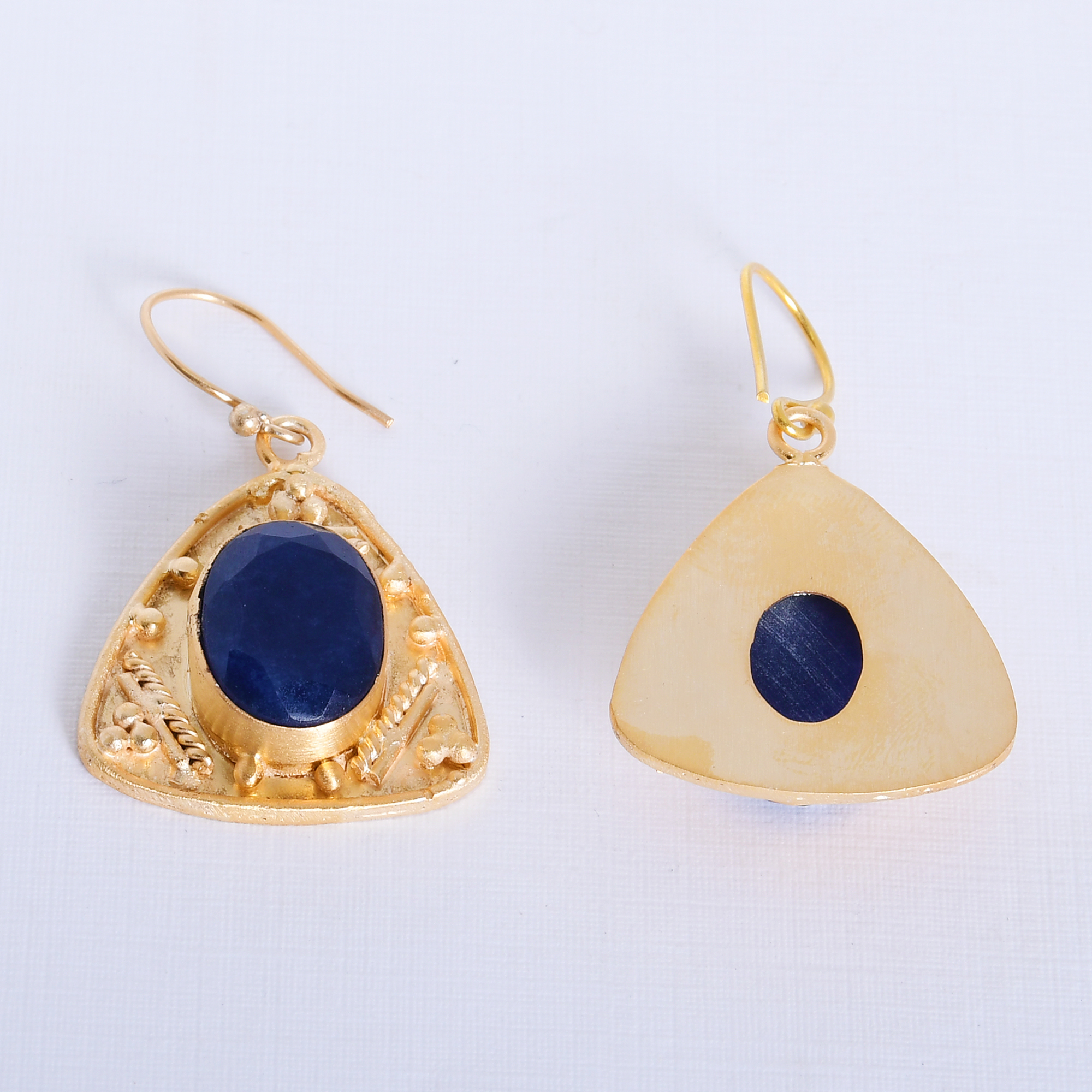 Extremely lightweight, these handmade gemstone earrings are ideal to wear all day long. The delicate metalwork is the labor of love of our skilled artisans. Bezel set, blue corundum earrings come with French hooks which facilitate movement. They make an excellent gift for a loved one.