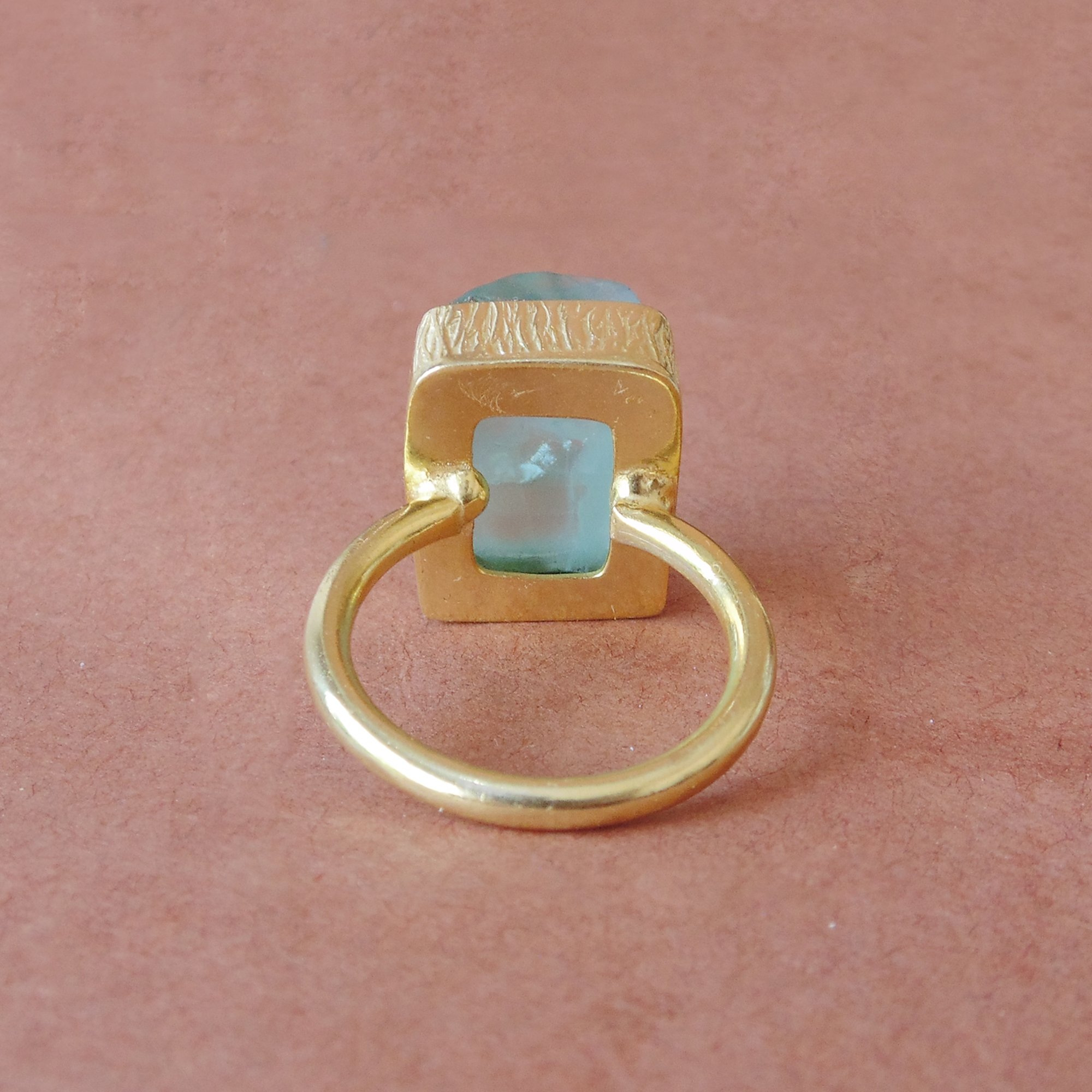 Gifting ideas post retirement just got a tad more fascinating with this natural green fluorite semi precious stone ring handcrafted in 18k gold plated brass that also works well as a bridesmaid ring.