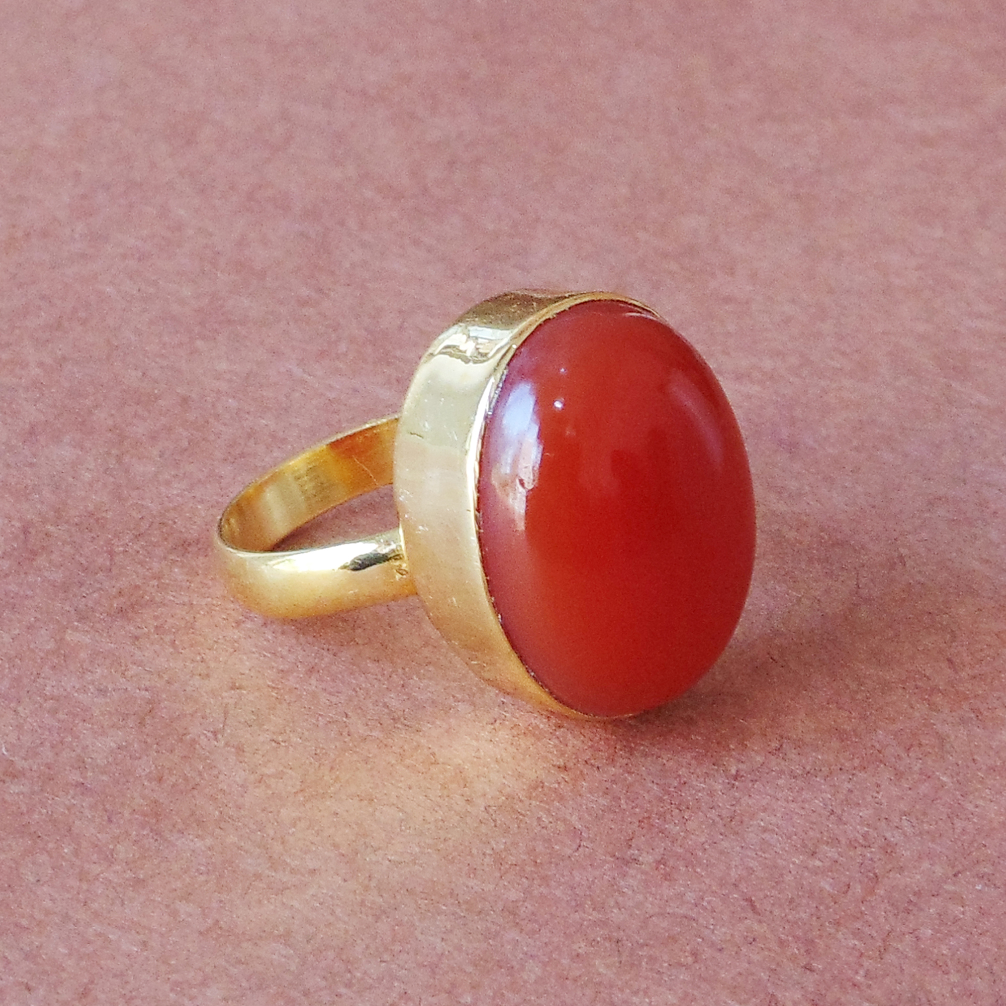 Handcrafted 18K Gold Plated Red Onyx Gemstone Ring